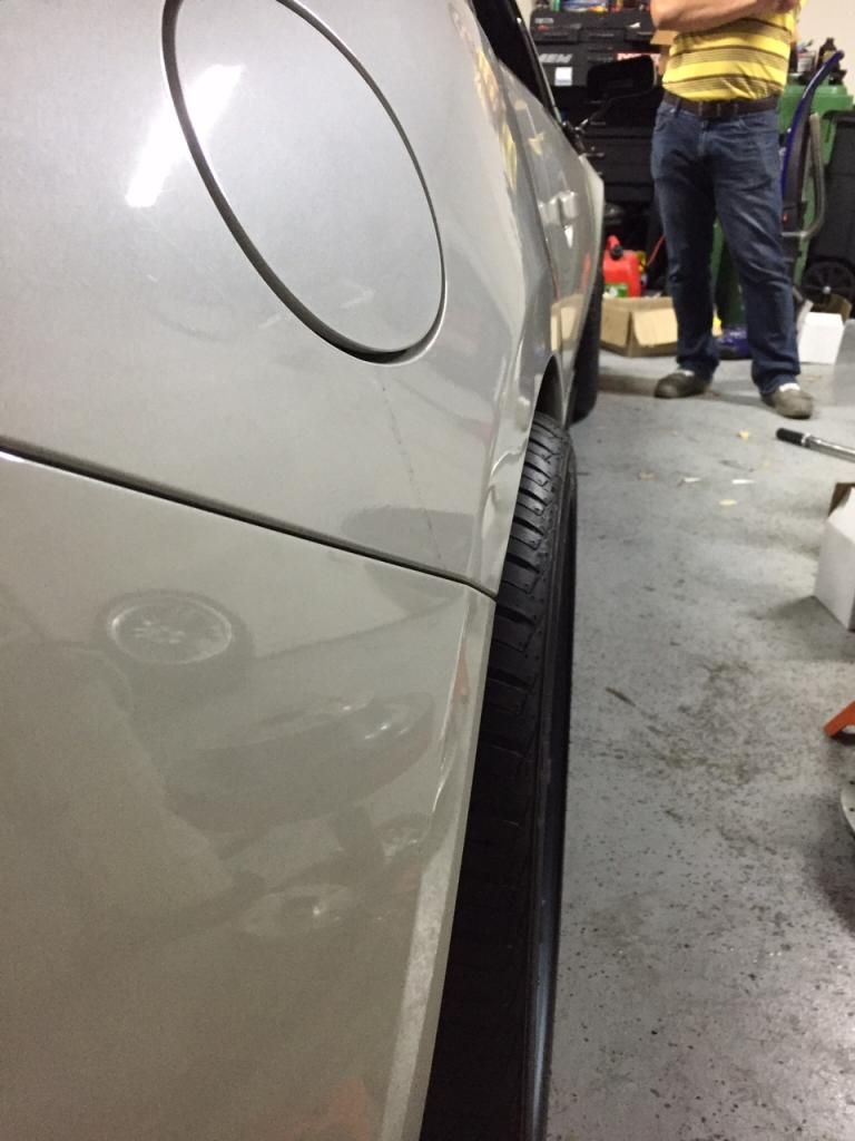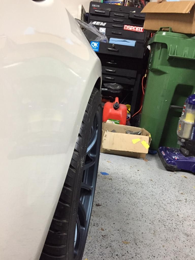 I just lowered the car back down last night after installing the stoptechs.. So the springs haven't settled in yet, but the rears poke out like crazy.. As far as tire to spring clearance it seems to be ok, until I put some load on it.. Wanted to ask before I hit the road and cause some damage to my wheels and/or springs... Anyone have any rubbing issues? @Jive Turkey @OmarGC @AutoRnD Passenger rear ![]() ![]() Passenger front ![]()