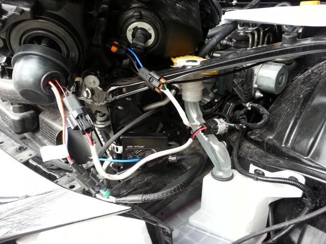 I ended up leaving the Y-splitter out. The high beam bulbs are just sitting in the housings now, and not attached to anything on the car. With 6000K LEDs and the 6000K HID kit, I didn't want to mix the colour with the high beam bulb. The switchback LEDs are really bright and are more than sharp enough to act as DRLs, leaving the bi-xenons only for night driving.