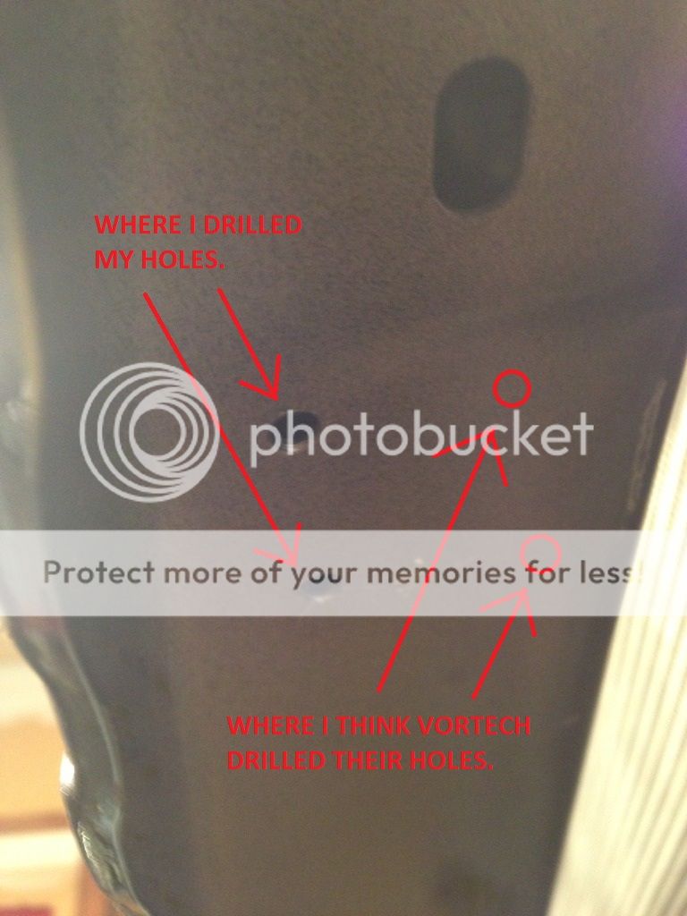 Ignore where vortech may or may not have drilled holes and just go by what fits. The docs I used when I installed mine had a lot of issues but I think they revised it since then. Now that I am at a computer it looks like you have far too much lean on that intercooler and its crushing against the ac condensor. I would re-drill as needed and push it further away. Just make it fit thats all that really matters. Don't wory about trying to do 100% to the doc. Just get it to fit within reason. Not every kit for a car is going to fit perfect. Anything that requires drilling has a bit of "room" for error. If it was extremely important for the exact angle to be made I am sure vortech would have supplied a template for drilling or at least measurements. So really dont sweat it just line the intercooler up to where it fits, and then drill. I personally had re-slotted my mounts and modified them (or maybe I made new ones I don't even remember). But I also mounted mine a little different. I put "studs" in my crash beam to mount my intercooler to.
