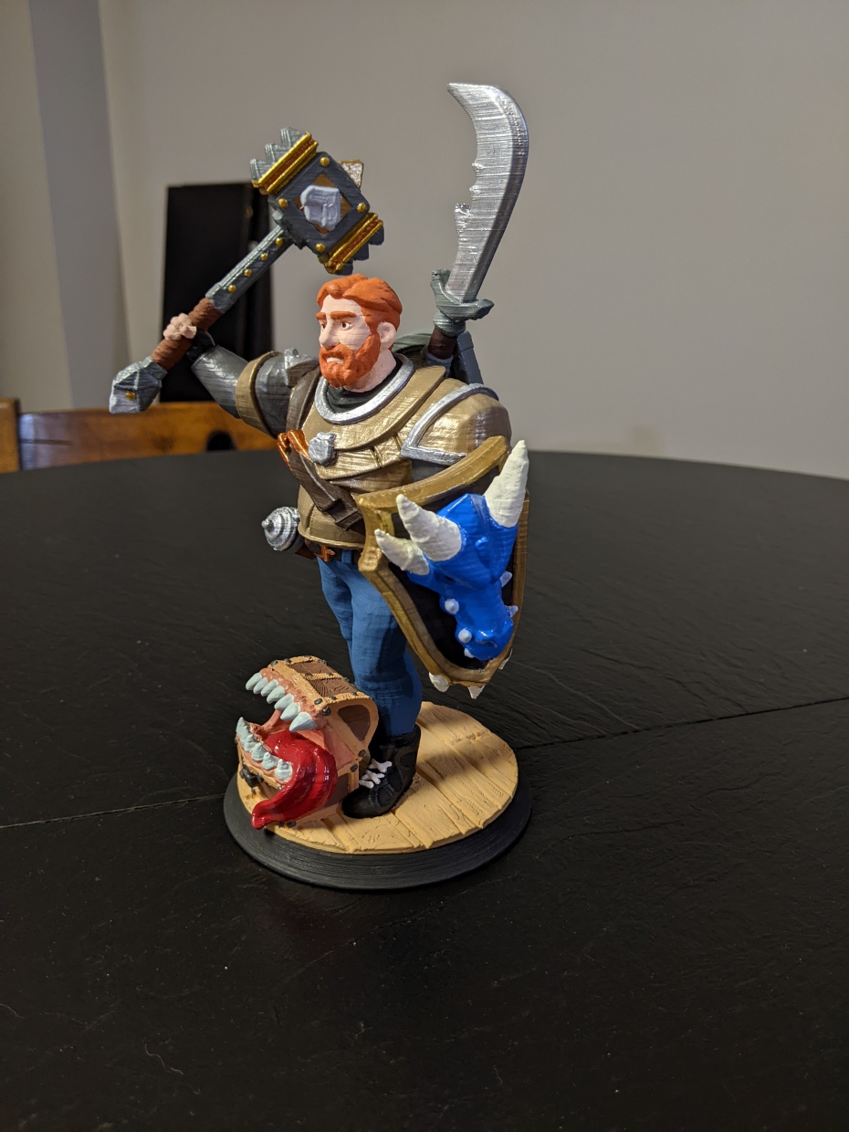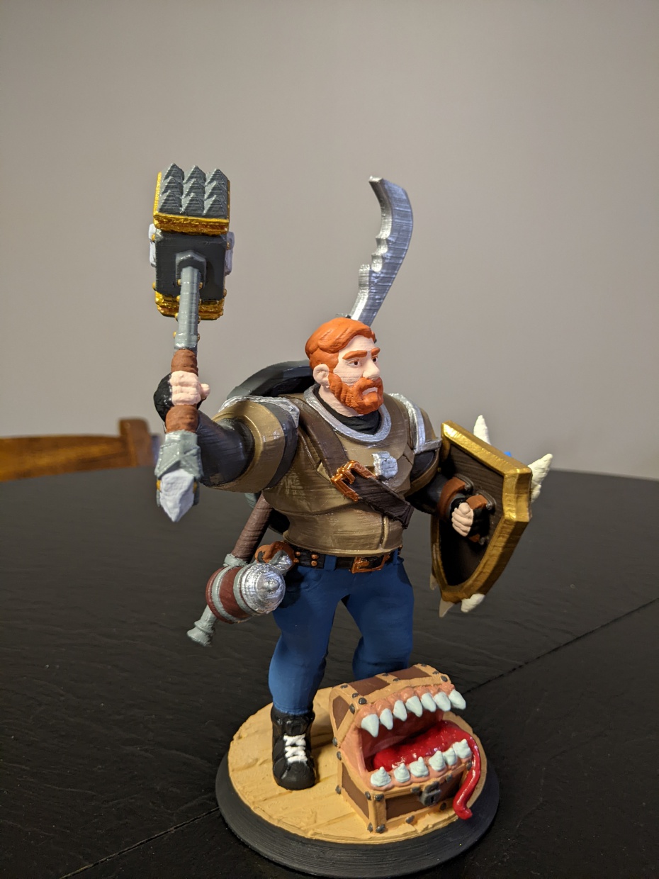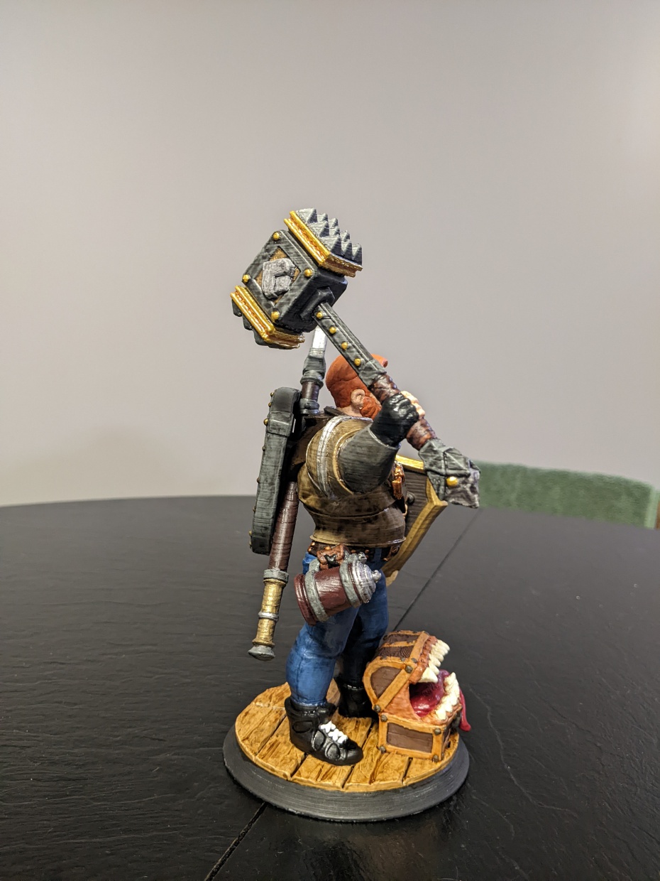 1. I am worried the wash will highlight the FDM layers. This happened a bit on the practice piece, but might be less of a problem on the real deal. Not really sure if anyone will have any advice here, but worth a shot. 2. I think these washes were formulated for minis that are much smaller, this being scaled up ~400% I think? That is important because the shading seems a bit off at this scale, and you can see every detail vs smaller minis. 3. The shading is a bit darker than I was expecting, so I really would like a bit more transparency to not change the base color too much. I think reducing the viscosity with flow aid or extra medium might help with all of these, but if anyone has some advice that would be great. Has to be done by Friday, so I can't afford to mess up too badly. Also, pics as an offering to the model gods