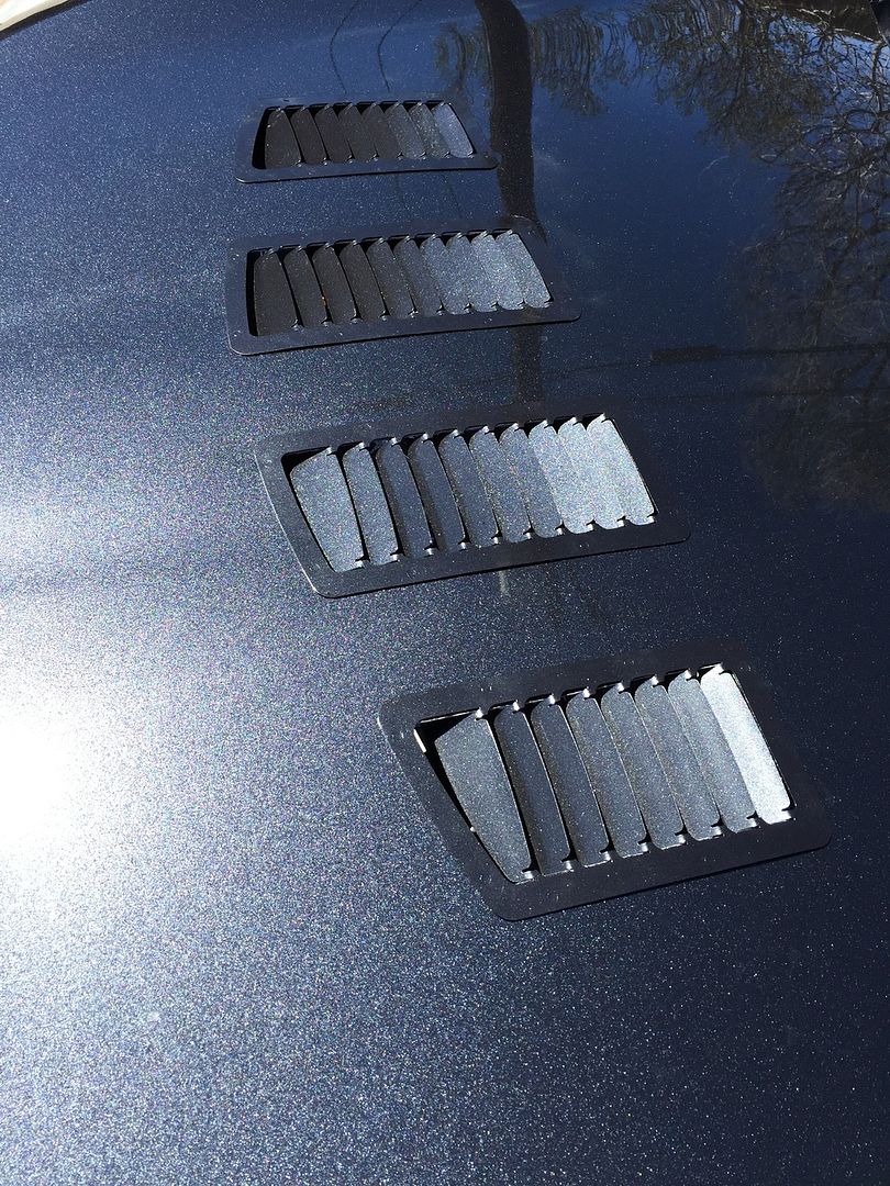 I've got some trimming I'll do later and need to make a few holes larger to let the vents sit flatter but for today I'm done. I'll probably paint match the raw aluminum edges of the hood too at some point.