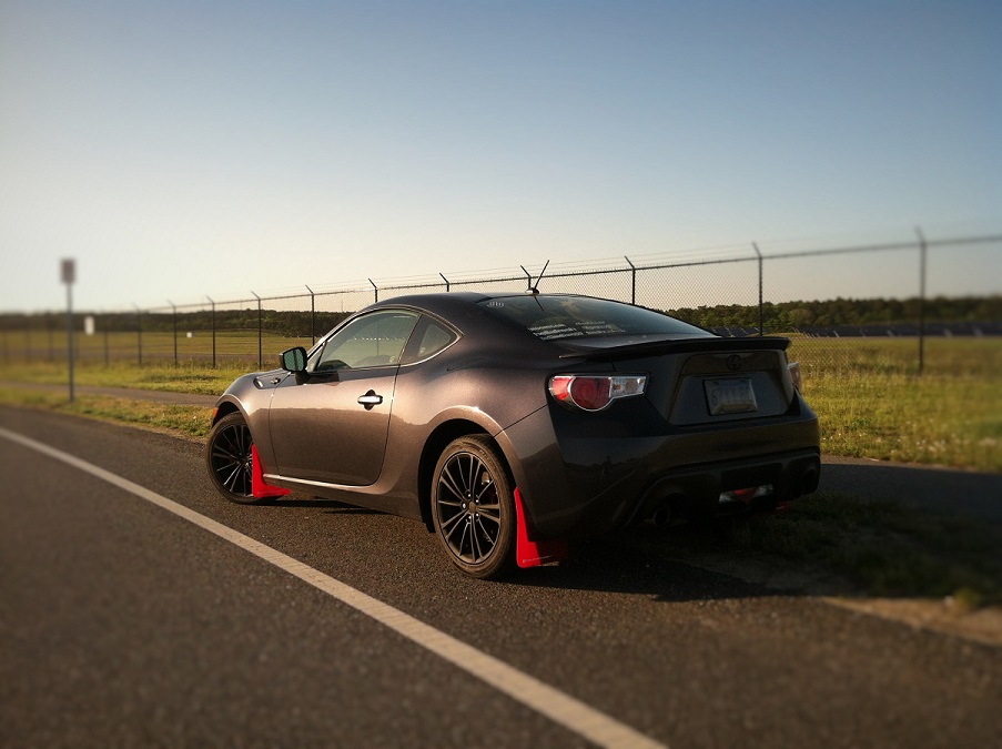 So far I have put on some rally armor mud flaps, Some black plasti dip on the rims and badges (also removed the frs badge) Red plasti dip on the calipers. I replaced my shift knob because it was rattling and got a IJDM shift knob, Red interior LED, and some stickers for the real windshield. I removed the front license plate and am awaiting my toy hook license plate mount along with my private label muffler delete and Open flash tablet all should be in by next week