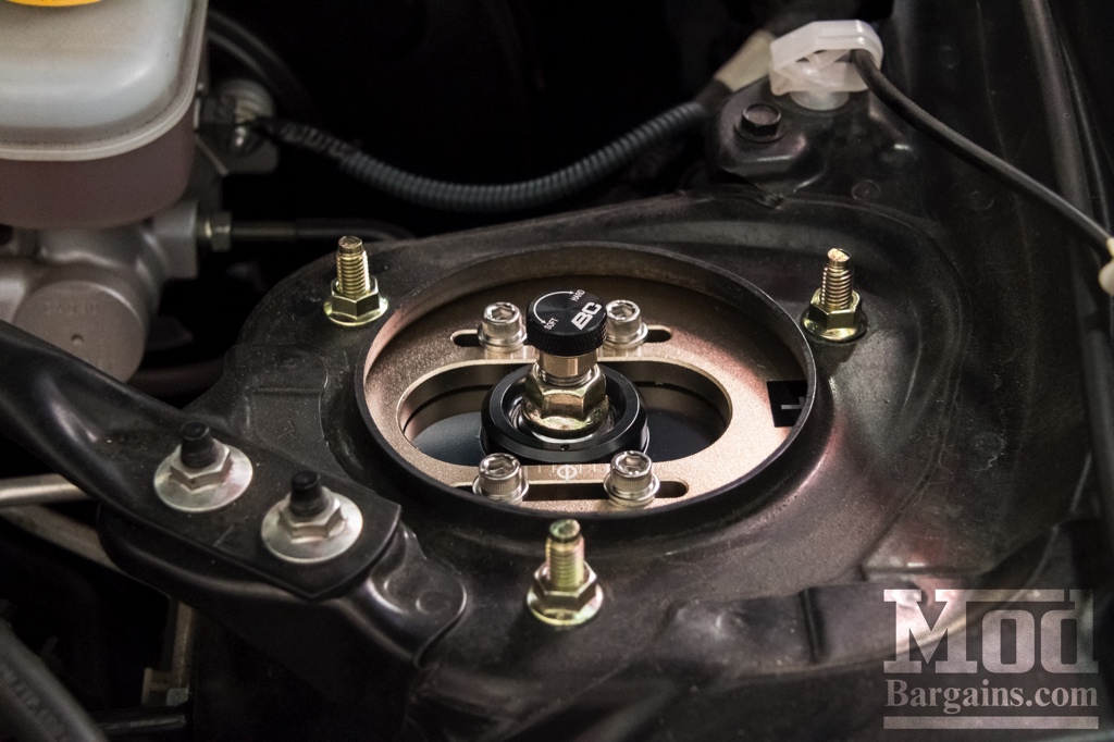 ![]() In the hands Feel: The box from BC was well packaged, and nothing was banging around during shipping since all the parts were well secured(unlike some other coilover brands...). The box is pretty basic, just your normal cardboard brown color with a few BC logos and some packaging straps. Out of the box, they have a very solid, clean feel-as you would expect from something new out of the box! These are 30 way adjustable and you can lower/raise these coilovers without adjusting spring preload. The body of the coilover threads into the bottom tube, allowing it provide a rather large range of adjustments in height. Install: Install was very straight forward, which is one of my favorite things about this car. Of course at the shop the lift was used, but coilover install is very easily doable in a driveway with jack and jackstands and basic tools. Height adjustment: You loosen the "lock collar" and then spin the body of the coilover in/out of the tube depending on what ride height you want. Adjusting ride height is reasonably easy, but plan on taking off the wheels. So ride height wont be constantly adjusted, but once you have your ride height dialed in, you wont adjust height (most people won't, unless you get a new wheel/tire setup-I haven't touched my coilover ride height in 2 years). Once installed, coilovers can be somewhat hidden, but the camber plates visible with the hood open really showcase the signature black/gold BC colors and clearly show how easy these are to adjust. The adjustment knobs for these coilovers are on the top, and to change a setting is as quick as opening the hood and counting the "clicks" and you spin the knob clockwise or counter-clockwise. ![]() The rear is slightly more difficult to access-but pop a few clips out and pull the carpet/cover to the side and you have instant access. If you really felt the need to, I supposed you could trim the carpet where the knob is for quick adjustments. But most people will probably "set it and forget it" unless you decide to hit up the canyons or a track day. No driving experience yet, but we'll find out more when the customer comes back for some more parts. Overall, a really good setup and of course some final ride height shots with stock wheels/tires since many of us on here don't plan on swapping the stock wheels. Final way the car sits now: ![]()