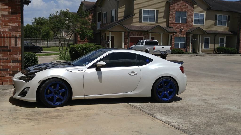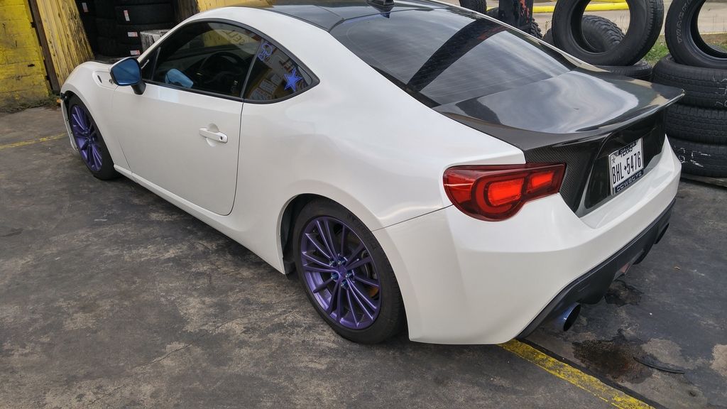 Current Mod List: Engine/Exhaust: -Mishimoto Carbon Fiber Catch Can -MXP overpipe -Grimmspeed Intake -MXP Header EL -MXP Catback -Motiv Concepts Catless Front Pipe Cosmetic Interior/exterior: -Beatsonic Shark Fin Antenna -Led Dome Light -Spec D Headlights -Toms Tail Lights -Toyota Badges -Leds Reverse,interior,license. -Leds for Side Markers,turn signals, DRL -JDM Side Markers -Carbon Fiber Brake Ducts -Seibon CSL Trunk -Rexpeed Carbon Parking Brake -Cusco Drift Knob -Roof wrap, shark fin wrap, front lip wrap -PWJDM Blue Washers -Anarchy Motive Shift Knob -Black TC buttons -Carbon Plus hood(Varis Hood Replica) -Aerocatch Hood latches -APR Carbon fiber brake ducts -Grillcraft grill black Wheels/Suspension/Brakes/Bracing: -Cusco LCA -RCE Tarmac II Coilovers -HVT Camber Plates -Mach V Awesome Wheels 17x9 black -Muteki SR48 lugs Black -Goodridge SS Brake Lines -MTEC Springs -Hotchkis Swar bars front and rear -Powergrid inc front end links(Company that makes Hotchkis) -Spencer Fab Rear Chassis Brace -Speed Factory V1 Strut tower Audio: -Ca-fi Head unit -Integrity Concepts Enclosure driver -Hertz HSK 163 Sound system -Alpine PDX V9 Amp Parts I used to have: -PWJDM Carbon fiber engine bay covers(everything) -Grimmspeed Engine/pulley cover --Varrstoen Es2 - powdercoated illusion purple -Enkei RPF1's Powdercoated illusion purple with casper clear -injen Intake -OFT -Valenti Tails -Fortune Autos -Flossy Elton Heavyweight Shift Knob -Grimmspeed License Plate Relocation kit -Injen Intake -Frs Trunk Mat -Motive Concepts Overpipe -Valenti CR Tails -86 Center Caps -Varrstoen 18x9.5 wheels -Ca-fi Head Unit -PWJDM Engine cover -PWJDM Purple Washers -NRG Neo Chrome Lug Nuts -Fa20 Intake -Stormcloud Grey custom Dip Job with blue flakes -Volk Te37s Hyper Blue 18x8.5 front and 9.5 rear. -Fortune Auto Coils -HSD Coils -Cusco Power Braces -86 motoring/NonstopTuning Pulleys(don't recommend) There's plenty more mods on the car and parts I've gotten rid of. I will update this with the full list when I can. Below is what she looks like today. I peeled the dip for now until I do my next color in a month or two. The Mach V Awesomes are my Daily/Track wheels and the Purple ones are just stocks I dipped purple in a high gloss finish for dailys before I got the Mach V Wheels. ![]() ![]() Past setups I've ran below. ![]() ![]() ![]() ![]() ![]() ![]()