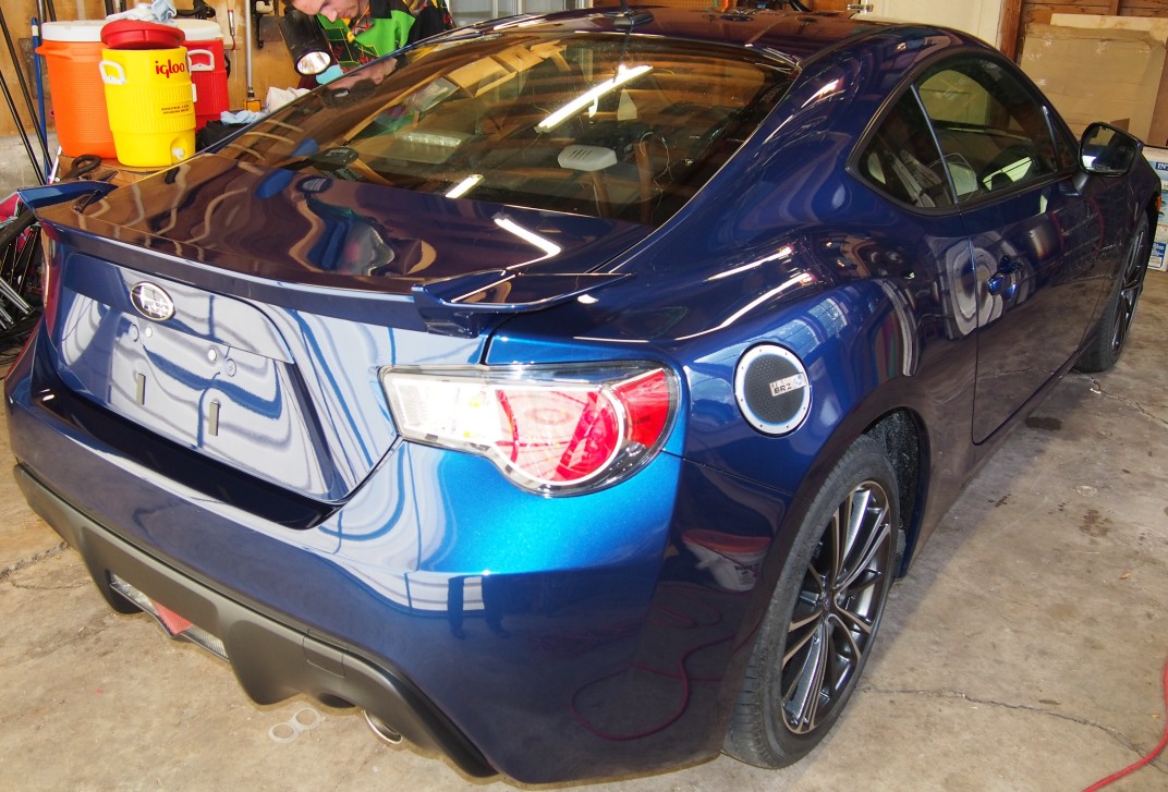 http://www.ft86club.com/forums/showp...&postcount=157 I will be adding pics and whatever I do to it here. It's the fourth, won't be doing much today! ![]() I did get one little bitty rock chip on the way home. Not sure what I'm going to do about it if anything. Probably just do the Opti-Coat right over it. I may put in some of my LED's this afternoon though. I put about 360 miles on it coming home, varied as much as I could on the interstate and a bunch of back roads, nearly took out one antelope and a hundred or so suicidal birds. Miraculously they all missed. Even on the HWY this car is fun, it's a bit louder than I expected but not bad at all. The suspension is like a roller coaster. It eats up the bumps without much problem, but on the dips in the road it tells you straight up "I'm following the road, you can join me if you'd like" then there's the YIPPY!!!! moment as you drop with it, love that! The speakers are unbearable to me, just horrible even after tweaking the EQ. Will be replacing those promptly. What kills me, even dropping the base as low as possible, certain songs' base lines still seem to get passed through the filters and the door speakers make a "Why don't you join me in HELL!!!!" sorta noise, like it's trying to do some boomy base, but just can't come close. I didn't take of the fuel door sticker as the dealer was pretty sure it would have been scratched up at the port. It's not as bad as I thought, but I don't think I want it still. Weighing my options at this point on whether I should try to take it off. I will be leaving the rear bumper applique on though, it's not very noticeable and I'll just Opti-Coat around it so it will still protect from scratches and what-not until it falls off. Chucked the kids in last night when I got home. My 6 year old daughter just curls up on the seat behind me since there is NO leg room as I'm 6'2" and the seat is all the way back. My 9 year old boy fits comfortably in the back with my wife in the passenger seat, though he does complain about his feet being under the seat. Too bad for them, it's not their car and I don't want them in it! Overall, very impressed, it's exactly what I expected and even though it cost $500 or so more than my pre-order, I'm happy with a few of the options, and that I got it 3-4 months earlier! Edit: July 5 Removed the Subaru and BRZ badges from the back, they were pissing me off for some reason. The trunk back is so small, I couldn't see enough of the wonderful GBS!!! I've also installed LED's in the LP, trunk, and door courtesy positions. Awaiting all the LED's I ordered for the Turn/Reverse/Fog/Map/Visor positions. Also I attached a few shots, it was raining today along with the LED's and the little chip I got on the way home.