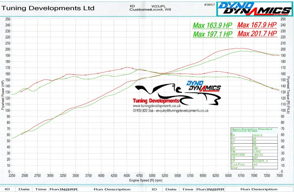 As you can see my tuner managed to smooth out the mid range and get a little bit more power up at the top end.