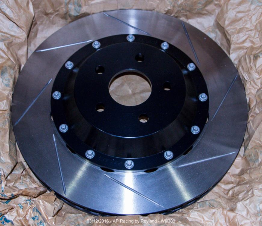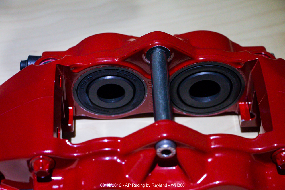 The custom kit I ended up with consists of red AP Racing CP9200 calipers, AP Racing 330x28mm discs with custom hats, brackets and Ferodo DS2500 pads. Here are some photo's of the kit: