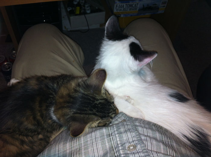 How I spend the majority of the time while at home. Oh and they are both much larger that that now.