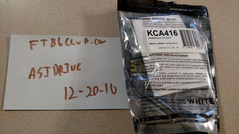 New front camber bolts for BRZ and FRS for sale. I decided to do camber plates over the bolts. The main packaging is open but the internal packing is still sealed.
