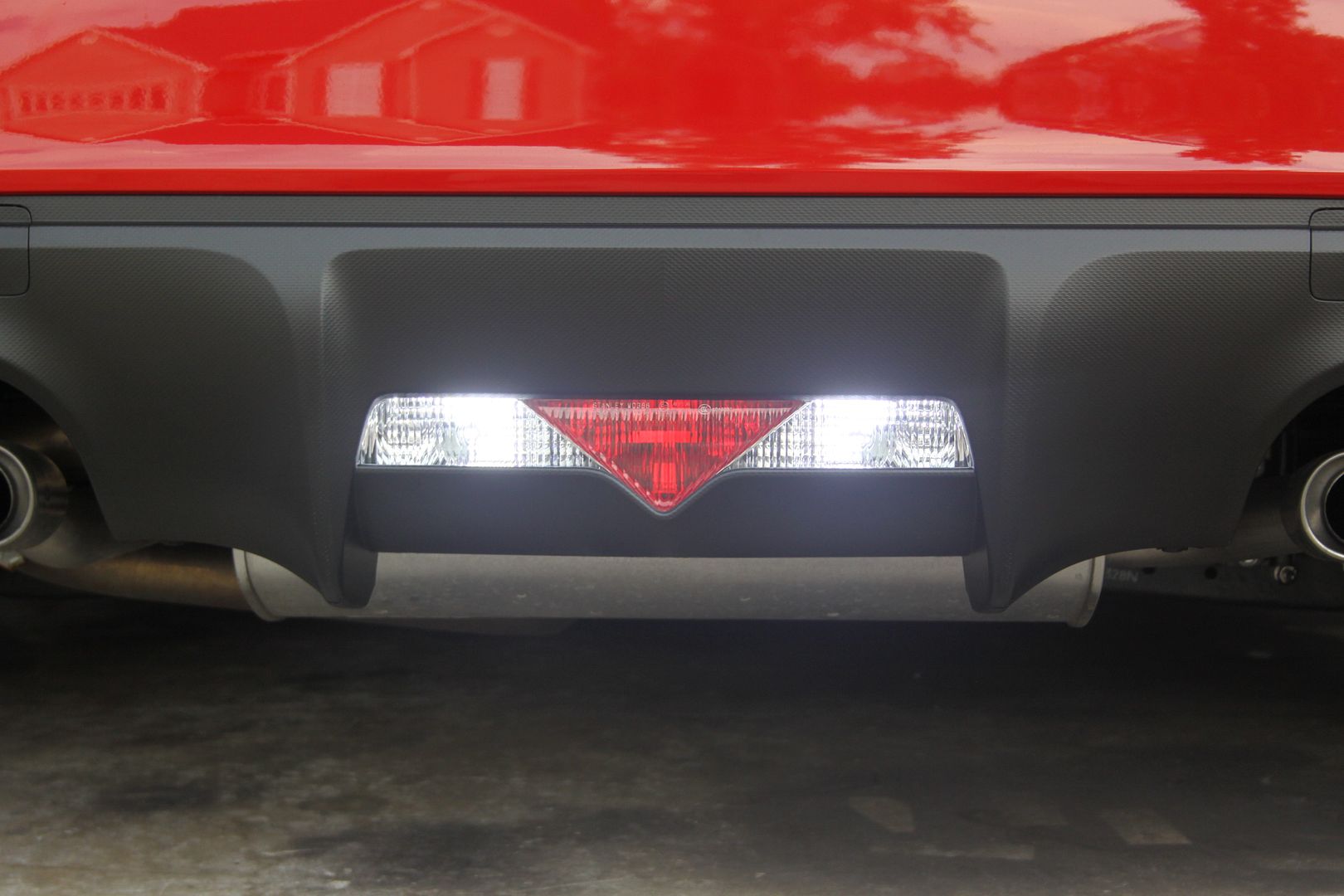 M-17: You can see the brake lights perfectly, in the picture they look really dark for some reason but I only did a couple coats so they are actually a lot lighter looking in person. I just wanted to get rid of that chrome look. |