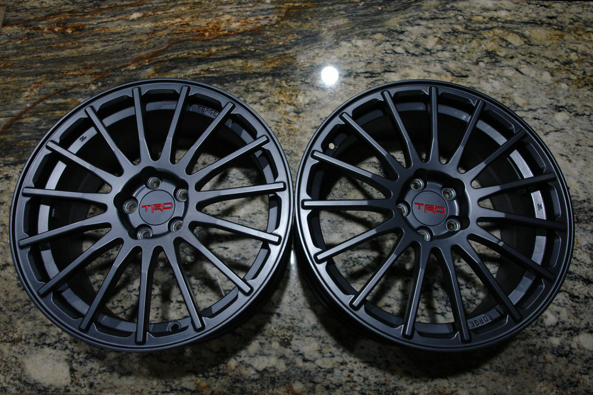 (2) Genuine TRD Lightweight Forged Wheels Removed from a new 86 after (100) one hundred miles Each wheel weighs only 17 lbs. Size: 17x7.5 Bolt Pattern: 5x100 Offset: +43 No dents, No curb damage. Minor scuff marks and paint chip from storage and tire removal. See pics. ![]() ![]()