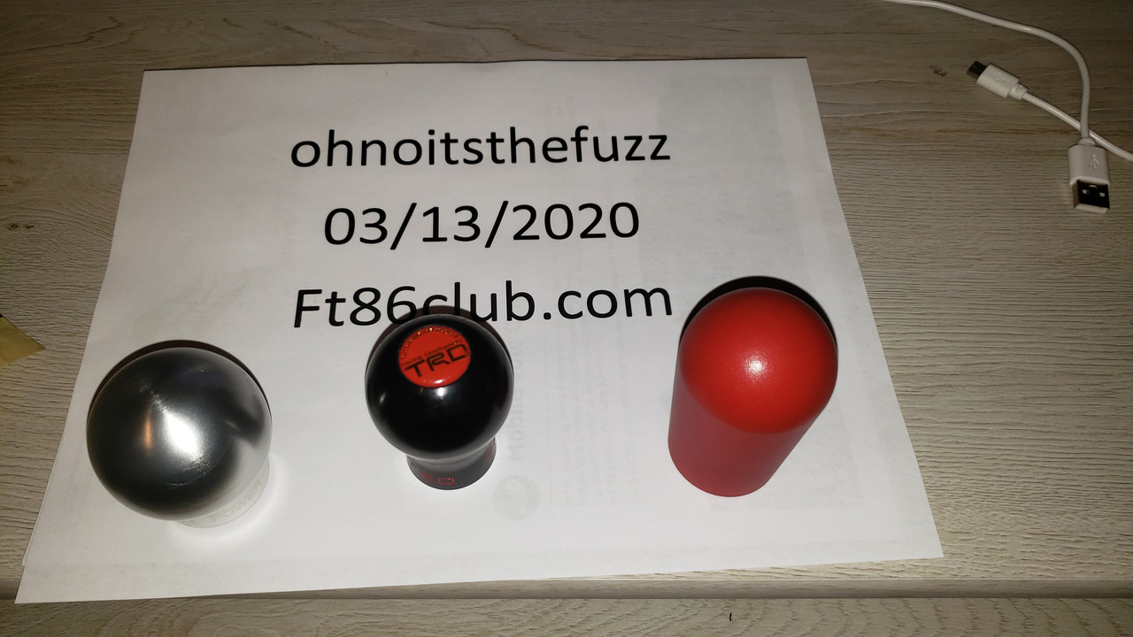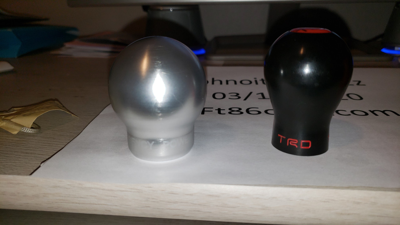 Agency Power Silver aluminum knob SOLD TRD Delrin SOLD Wrinkle red powder coat knob. Don't remember maker, however I do believe it was Moddiction. Ordered it a few years back from this forum and was custom made. The thing weighs a ton. I believe it is around 1.5 lbs. Definitely made a difference in rowing through the gears. $SOLD Reverse lockout works great with all of them. ![]() ![]()