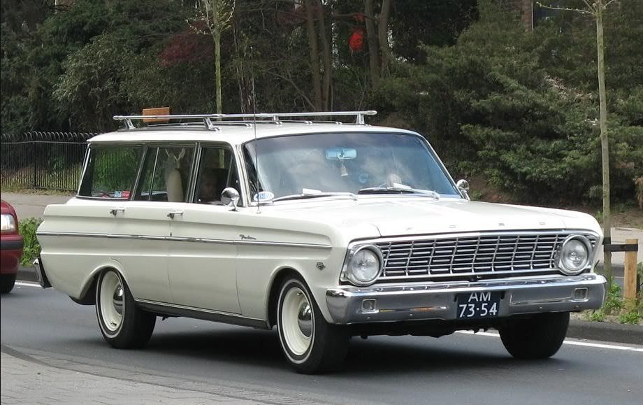 1964 Ford Falcon wagon just like this one except with no roof rails/rack, and different wheels. Steel dash, steel steering wheel, AM-only radio with civil defense markers in case of a nuclear attack (all the more seasoned members will remember growing up with duck-n-cover drills in school). Brings back fond memories...