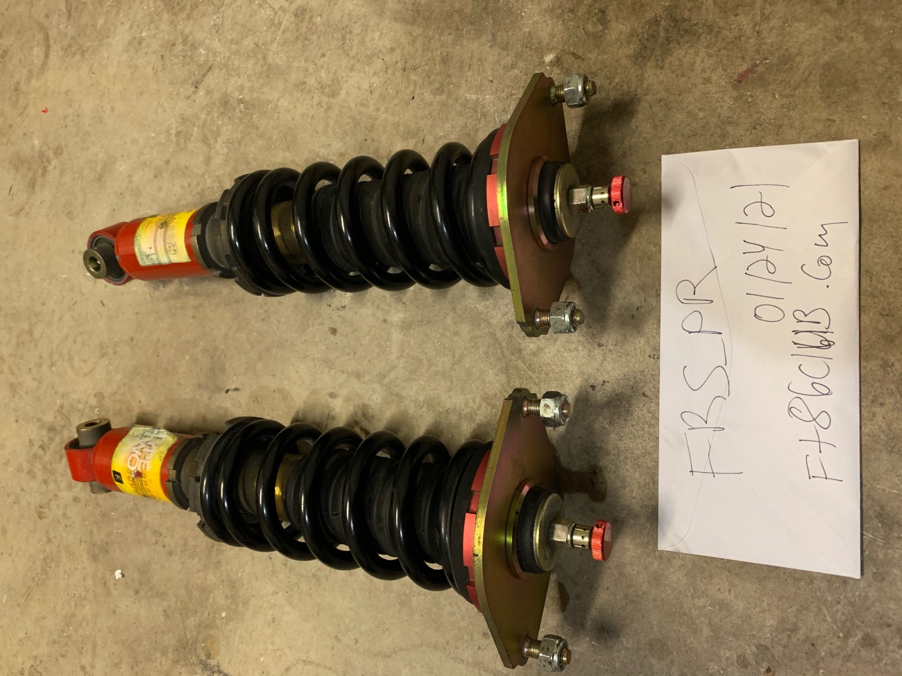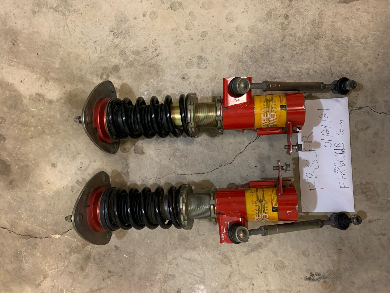 Reason: Changed to a different set up, taking space in my garage Details: Coilovers have approx 15K miles, R front shock is brand new (hit a pot hole). 1 damping knob is damaged but you can get them for $15 on their website and you can adjust in the meantime with hex/allen key. Price includes paypal fees but no shipping. They are already boxed a ready to be shipped Website: https://www.f2suspension.com/product/subaru-brz-12-type-2/ Located in San Antonio, feel free to ask any questions |