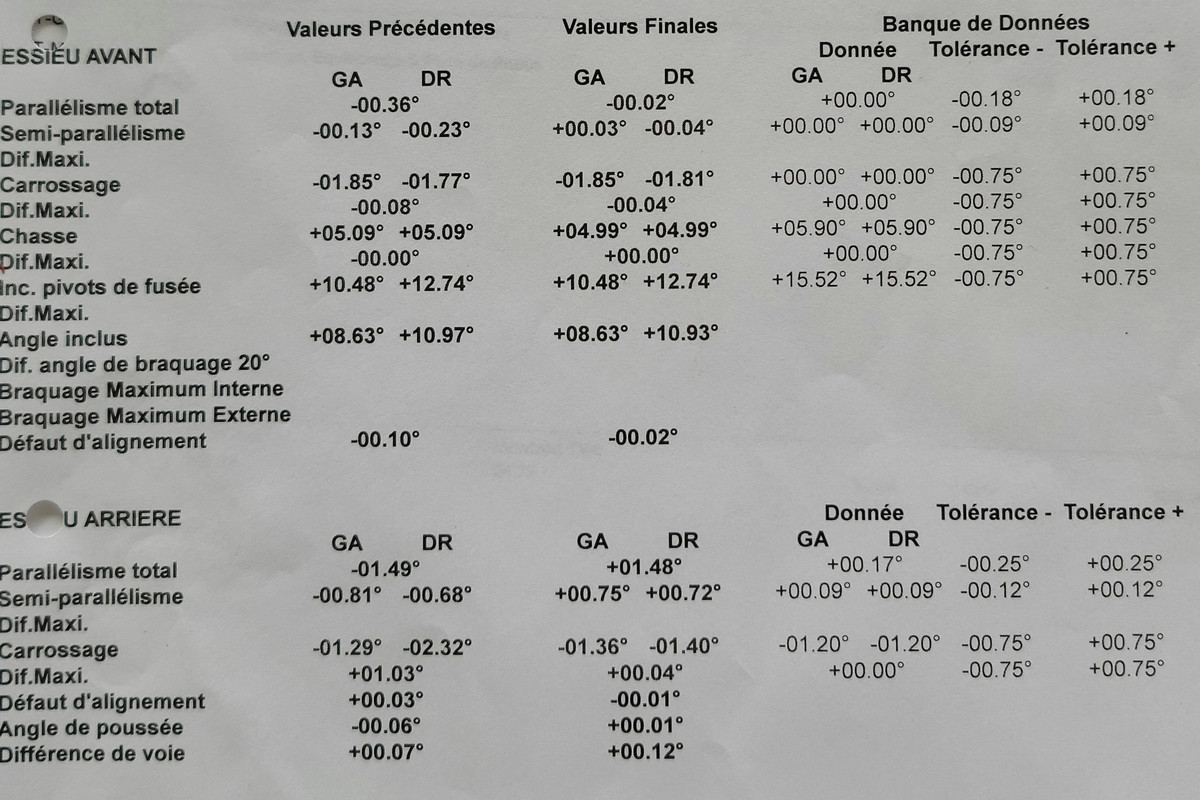 But what's sure is that with 7/16' instead of 1/16' toe in at the rear, the car isn't going to behave properly and the symptoms I'm having make sense under that light... I will call the garage who made the alignment and ask them to correct that under warranty. |