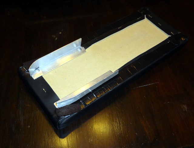 Materials: 1 foot of black vinyl fabric (from my local Jo-Ann's fabric store). They have a large variety of different colors and textures. I chose the Whisper Black, which has a nice matte finish. It costs $21.99/yd but you only need a foot long section to make two or three of these. A piece of 1/2" MDF (Medium Density Fiberboard) A 1" thick piece of foam cushion (from Jo-Ann's it was their "Chairpad" foam sold in multiple thicknesses and sizes.) You can change the thickness of your armrest by using thicker or thinner foam. A spool of heavy duty upholstery thread and a needle. Here is what the vinyl I chose looks like: ![]() I wanted mine to be a rectangle and to leave the gap at the front open for a cell phone or MP3 player power cord to exit. I chose the size of 6.5" by 16", which covers the entire opening and then some. First, cut the MDF to 6.5" x 16". Same with the foam (using the MDF as the template). Sand the MDF on all sides and lightly round all the corners to avoid sharp edges. ![]() Lay the foam and then the MDF on top of a vinyl, with the black face down. The vinyl has a white fabric backing. Mark the outline of the foam/MDF with a marker so you will know where to cut the corners. ![]() Now, cut the corners as shown. You can then gather a corner inside out and sew from the corner down about 1 1/2" (or the height of the combined foam and MDF). After sewing all four corners, turn the vinyl inside out and put it black side down. Now insert the foam followed by the MDF. Start at one of the narrow ends and pull the vinyl taught and lay the edge on the back of the MDF. Using a heavy duty staple gun, secure the edge of the vinyl to the MDF (The MDF is incredibly hard to staple into. If the staple doesn't penetrate the entire way take a hammer and finish the job.) Next, do the opposite end and then the two long sides, pulling the vinyl taught before stapling. Try to avoid any bunching or sags. You can always pull out the staple and try again if it's not quite right. Once all the sides are done, the next part is always the hardest for me, the corners. Try and remove as much material as you can at each corner and fold the remainder over and staple it to the MDF. You want to have a nice flat fold, not a thick bunch of vinyl at each corner. I was partially successful! ![]() Here is what it looks like from the top: ![]() Here is how it looks sitting in the car. ![]() I came up with a method to have the armrest slide open to access the contents. I made two tracks out of 90 degree angle aluminum and mounted them on the bottom as shown below. I had to curve the ends so they would slide up to the curved section of the opening. ![]() Here is a picture of the armrest in the open position: ![]() It is not secured with anything so it can be removed easily. Last edited by greighn; 11-18-2012 at 08:47 AM. Reason: Added photos of slide mount. |