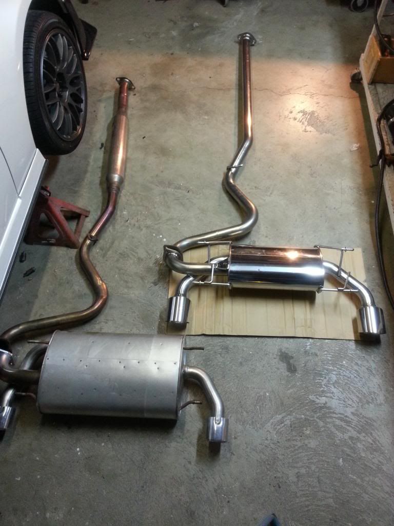 Piping is 60mm with a 100mm tip!!! ![]() [ame="http://www.youtube.com/watch?v=heQmO4QuPYY&feature=plcp"]fr-s tanabe medalion touring catback with tanabe front pipe - YouTube[/ame] [ame="http://www.youtube.com/watch?v=82GyYR31cQU&feature=plcp"]Fr-s tanabe medalion catback / tanabe front pipe - YouTube[/ame] ![]() ![]() ![]() ![]() ![]() ***REMINDER*** My fr-s already had the Tanabe 60mm front-pipe installed prior to this installation so the oem front pipe will not be shown in this install. ![]() Here is a picture of how the exhaust will come. part number T70166 ![]() Inside box are : -midpipe -muffler -14mm bolts x 2 (to be used between mid-pipe and muffler) -Gasket (to be used between mid-pipe and muffler) -a small information paper regarding your new exhaust. ![]() ![]() Installation time- aprox 1hour and 45minutes..... (jacking up the the car with jack stands on a lowered vehicle takes time, as we all know hehe) Tools: The tools listed / showed below are needed for this installation. -Jack -jack stands or lift. - rachet -14mm socket -12mm open wrench or 12 mm socket -WD-40 -Screwdriver ![]() INSTRUCTIONS: Once you have the car lifted on jack stands safely, go under the car and you will see where the front of the mid-pipe and front pipe is connected. ![]() To disconnect these two parts you will find two 14mm bolts and 12mm nuts holding them together. Unbolt them by using the 14mm socket and 12mm open wrench. *** the bolts are connected with a spring but don't worry these having tension because they wont** ![]() Next, lets move to the muffler so we can disconnect it from the back end of the mid-pipe. The muffler is hooked on by 4 rubber hangers and two 14mm bolts. You will again need your handy dandy 14mm socket. ![]() ![]() After unbolting, you can now take off the four rubber hangers. This is where my WD-40 came into work. I sprayed a very small amount of WD-40 where the rubber was hanging from the hangerr...and...wallaaaa! it slips right off!! JUST BE CAREFUL!! The Muffler is pretty heavy. (especially when your laying down). ![]() Now since you got the muffler out of the way, you can take off the mid-pipe by taking it off its 1 hanger. (again you can use the WD-40 if needed). *A donut shaped rubber part MIGHT come off between the front pipe and mid-pipe but keep that since that will be used still for the new exhaust.* ![]() ![]() Now set those to the side and stand back as you see its comparison with your new TANABE MEDALION TOURING EXHAUST!! ![]() ![]() ![]() Install is just the reversal of what we just did. 1. Install the Tanabe muffler by attaching it to the OEM rubber hangers, then on to the metal hangers on the car.flat head screwdriver might help to get the rubber hanger on ther car. ![]() 2. Hook the Tanabe midpipe on to the rubber hanger, then on to the hanger on the car. *if the donut shaped rubber part came off earlier, put it back between the mid-pipe and front-pipe* ![]() ![]() 3. Now bolt the mid-pipe and front pipe together with the oem 14mm bolt, 12mm nut and spring. ![]() 4. Bolt together the back end of the mid-pipe and muffler with the included new 14mm bolts from Tanabe along with the new GASKET. ![]() 5. Wipe your TANABE EXHAUST once on the car since you might have put some grease, finger prints etc. Keep that thing SHINNYYYY!!! This install didn't take much time like i said earlier. Just jacking up the car took a while since the car was too low. Other than that its one of the easiest install I did. extra!!! a clip of just the front pipe!!!! catback not connected yet!!! just for FUNNN! haha [ame="http://www.youtube.com/watch?v=61jAIbS6lG8&feature=plcp"]Fr-s no catback---- tanabe front pipe only - YouTube[/ame] Last edited by kinryu; 12-13-2012 at 03:46 AM. |