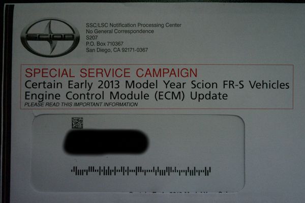 Not sure if other people have got this letter..but i got a letter with my vin number on the car stating that certain early model year fr-s vehicles ob2 diagnostics system may need to be updated and i should go in for an update.