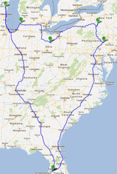Here's the current plan, you'll note a specific Yuengling Brewery stop, alone with stops that will look quite familiar to Expo and WMHM participants, assuming we can find events on the days we will be around said areas mid week. ACC might be added to the tour as well if we can find, or sneak into, a track day on the Thursday (probably) before RA.