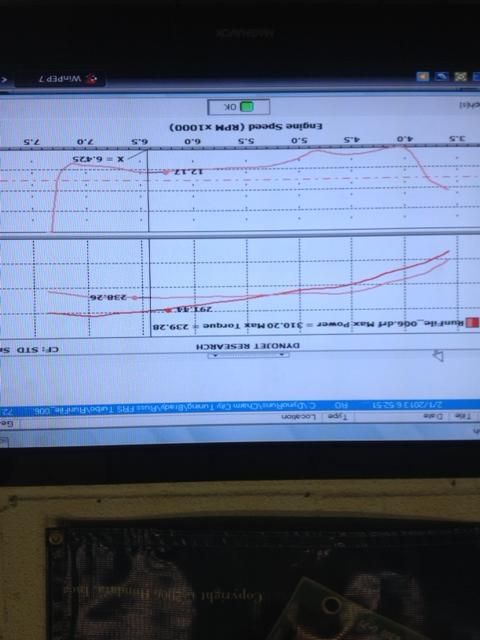 SAE and STD are 2 different ways of correcting a dyno reading based on ambient conditions. When you dyno a car you can choose Uncorrected, SAE, and STD. You also can choose a smoothing factor to make the graph a smoother curve. Uncorrected is going to read highest. I've read a lot of arguments about SAE vs STD numbers over the years, there is a thread about this in practically every enthusiast forum in existence. The 2 Correction settings have different assumed ambient conditions along with some high end math equations that give your car a hp/tq reading. The differences are a few percent at most in most situations. The dyno we used does not belong to Pure Automotive Performance, we rent from a friend at a neighboring shop. It is a dyno jet, which if you read on dyno jet's website, can not be manipulated to change numbers like a Mustang or Dyno Dynamics can be. Dyno jet guarunteesthat your numbers with the same correction factor and smoothing should be within .5 hp from dyno jet to dyno jet in identical conditions. I did not even pay attention to whether or not we were using SAE or STD. Why? Because a dyno is a tuning tool to see how a car is performing in order to make sure it is set up safely and runs properly. Dyno numbers were not our focus. Did we have hopes and expectations? Of course. Did we break any records? Not that I know of. Did we make our goal of 300hp. Yessir!