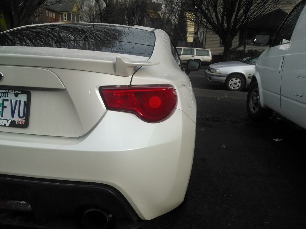 Every possible option installed at that time (gas lid was not available) At the dealership! ![]() First thing I did to the car was get a 20% tint ![]() Invidia N1 exhaust, titanium tip ![]() Eibach Sportline Springs ![]() ![]() Perrin shorty antenna/crank pulley Perrin HQ ![]() ![]() ![]() ![]() Tail light vinyl wrap, blood red Light on ![]() Day time ![]() Night/indoor ![]() Rota G-Force, Hyper Black 18x8.5 +48 with +12mm Ichiba hubcentric spacers, 18x9 rear. Hankook V12 225/40 front, 245/35 rear. Rota hub cap removed. ![]() ![]() ![]() Subaru emblem vinyl overlay, Matte black background/SWP stars ![]() ![]() Fender garnish plasti dip, Matte black ![]() ![]() ![]() ![]() HT Auto front lip ![]() ![]() ![]() Some photos I took over the last few months: ![]() ![]() ![]() ![]() First time making a youtube video: Invidia N1 Catback exhaust note [ame]http://youtu.be/mXuijzK5les[/ame] Walk around with mod list video: [ame]http://youtu.be/wT9N3pw3TSM[/ame] Spring 2013 mod to do list: Perrin CAI Invidia catted or non catted down pipe (still debating) ECU tune Front Camber bolts rear lip spoiler (Stillen, 5AD or DF rear spoiler http://www.ft86club.com/forums/showthread.php?t=23868) Matte silver vinyl wrap side mirrors Summer/Fall 2013 mod to do list: FI (dependent on reliability) Bilstein B14 coilovers New nav/stereo (stock nav is one of the worst I've seen)