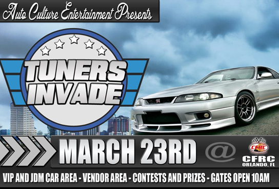 ![]() Auto Culture Entertainment Inc. Presents "TUNERS INVADE" At the Central Florida Racing Complex on March 23rd, 2013 All the best performance shops JDM Cars VIP Cars Drift Cars Exotic Cars Fun Contests $25.00 to show your car (includes Co Pilot) $5.00 to attend. Stage 3 Imports will be shooting a video at the event. A friend of mine is trying to create a new Tuner Show in the Orlando area. Below is the information and the link to the Facebook event page. https://www.facebook.com/events/181657765291936/ Auto Culture Entertainment Inc. Presents "TUNERS INVADE" At the Central Florida Racing Complex March 23rd 2013 All the best performance shops JDM Cars VIP Cars Drift Cars Exotic Cars Fun Contests $25.00 to show your car (includes Co Pilot) $5.00 to attend. I would love to see you guys out there.