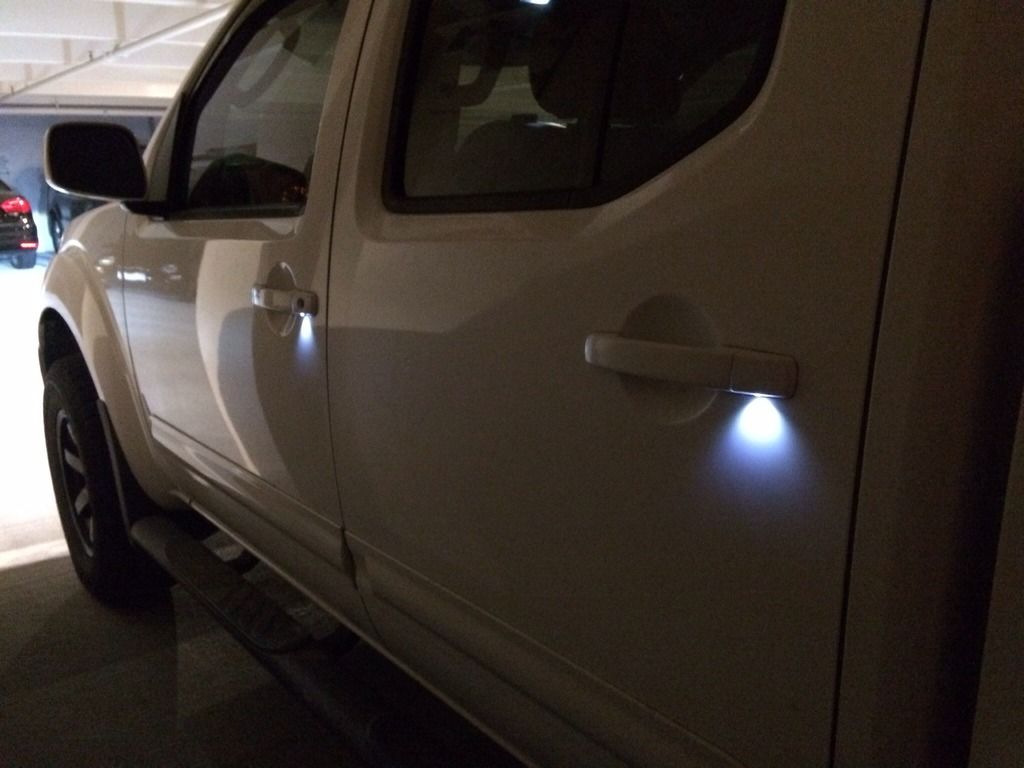 If they come on like the dome it would be easy to add it to handle but you'll have to have a body shop drill a hole and add an led. If it doesn't come on you could still wide it to the dome light like frs guys do for courtesy lights. Sent from my iPhone using Tapatalk |