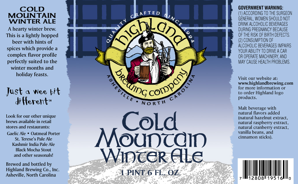 Winter beer season is finally here, so to everyone who can get it, do yourself a favor and get some Highland Cold Mountain. Store here was limiting one case per person, so I went back another day to get a second case