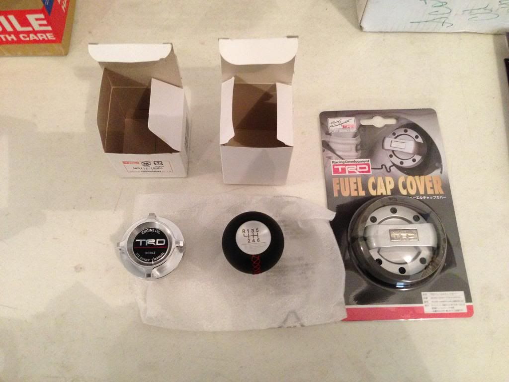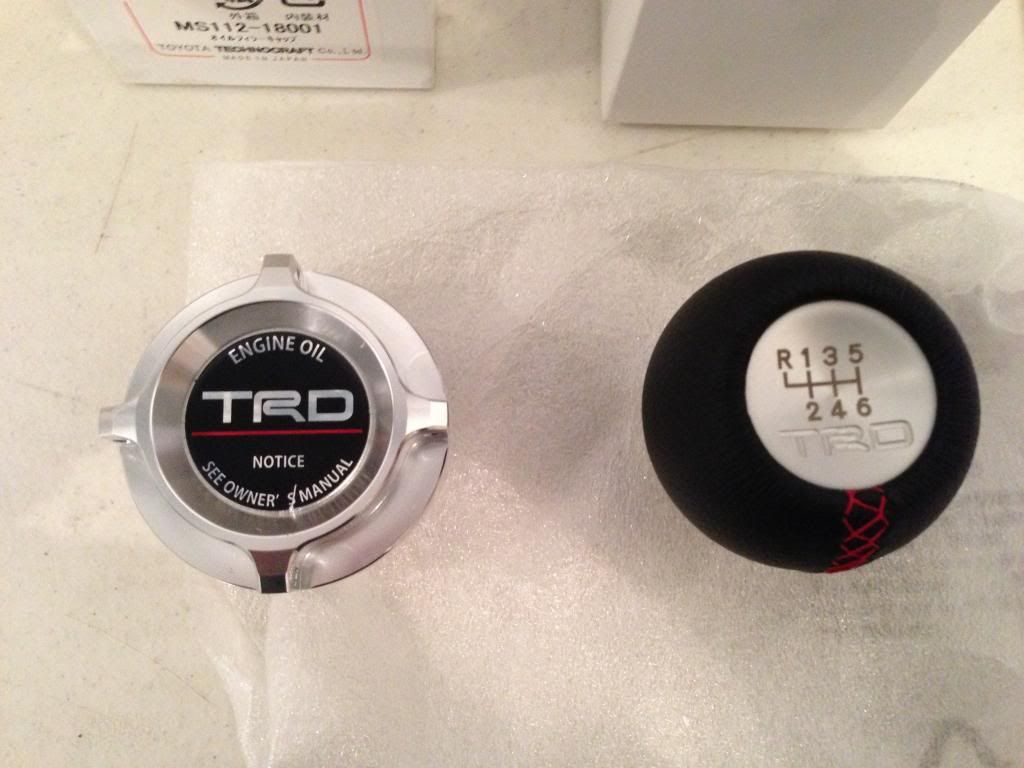 (1) TRD Oil Filler Cap $163.00 + Shipping etc You'll note on pictures the Oil Filler cap decal in middle has one "tiny" scratch on it , this is way it was, I been waiting "forever" it seems for a replacement but it has never came, so therefore I will reflect that. Again, NONE of this has been mounted or used in any way all new. This was all ordered for a friend who was buying a FR-S and wanted all same stuff I had for the tiny dress up TRD Parts so I am stuck with this and decided to sell it off here. I have over a 100 score on Ebay and same on several other forums which if you require to know I can share NP. I am asking following shipped: "Some items sold, updated April 30th, 2013 to reflect" Oil Filler Cap $140.00 Shipped all in due to "tiny" scratch I'll discount more If you want it all I'll edge out some more savings to ![]() This will all ship regular mail unless you want to work something else out. I can take EMT or Paypal, just PM me if you are interested, thank you. Shawn Here are pictures. ![]()