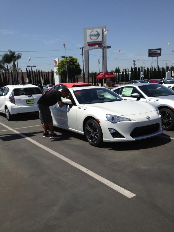 Hello All! My name is Erwin member since 1/28/10 from California. I've been lurking on this forum for a while now tryng to absorb what I can from everyone. I drive a 1985 Corolla GTS daily. I just purchased my Whiteout MT FRS on 5/9/13 she currently has 118 miles and so far I am having a blast! She's still a long way from being pushed a little harder but the smile on my face gets wider the more I drive her! Looking forward to meet a lot of 86 enthusiast in the future. A picture of me checking out a whiteout frs. This particular one was an A/T ![]() after a fun test drive I placed a deposit for a M/T. I couldn't have asked for a perfect california temperature for a test drive ![]() After waiting a little over 2 weeks I received a phone call from longo that she's finally on the lot. ![]() 7 hours later driving here and there and completing some paper work it was a done deal and keys were handed over ![]() ![]() The weather started out great blue sky and white clouds but by the time my family and I arrived at longo it had started to rain. This is the last photo taken before she left Longo's lot ![]() Picture taken the next morning after her first wash ![]() ![]() ![]() My daily driver for over 10 years. She's been very good to me now she's going to get some very well deserved rest