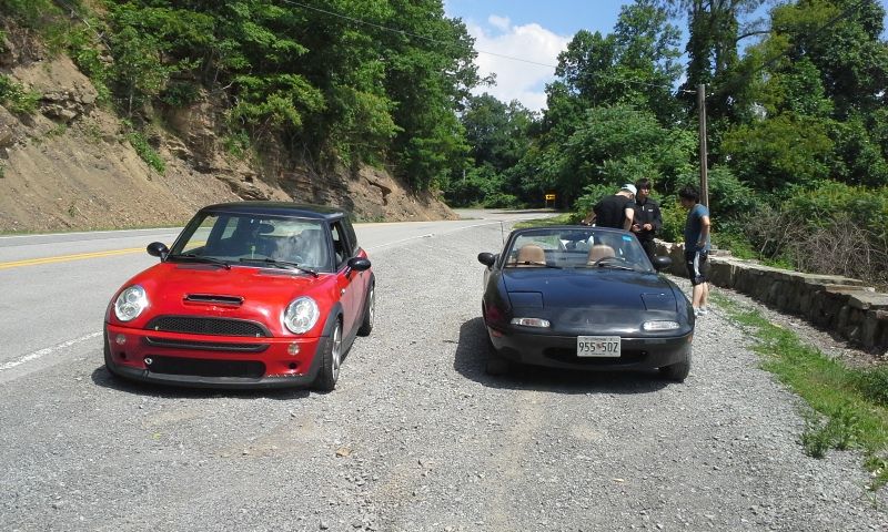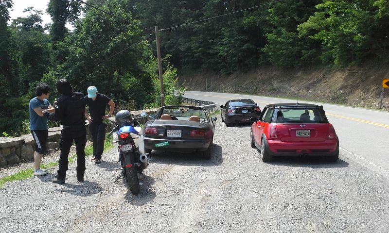 List of cars/bike went to 13' FR-S (Stock suspension) 05' Mini Cooper S (well modified in terms of suspension/wheels) 92' Mazda Miata (just an oldie car. not much) Some bike (He has 350z, but one of the wheels went in for repair) All these guys are into cornering/suspension mods rather than power mods, so they're pretty serious about taking one corner at a time. Since the miata is old/tearing and not specifically modified for this trip, it was a big dangerous. The car spun on a down hill and stopped few inches off of the guard rail. Overall, it was a great trip. We felt sorry for mountain neighbors because we had to go a bit fast to pass them. Some got mad and there were some fingers going on ![]() Didn't get to take enough pictures... was busy driving! Oh, and the FR-S handled REALLY WELL. I don't really take a risk on a tight corners, but the car wanted me to go faster and faster. Most speed limits were 55 straight, 35~45 on corners and I was going at least 15mph above whole time. I am satisfied with the stock suspension for now. Let the other friend drive my car and he was amazed how it did. I am loving this car every day. I look forward to modify this car, so it is more enjoyable in every possible way. Few pictures... ![]() ![]() ![]() ![]()