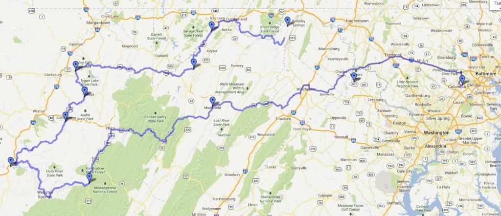 https://maps.google.com/maps/ms?vps=...9a8&dg=feature As all you know... the road won't be fun until you pass the Frederick. I really really recommend this trip! |