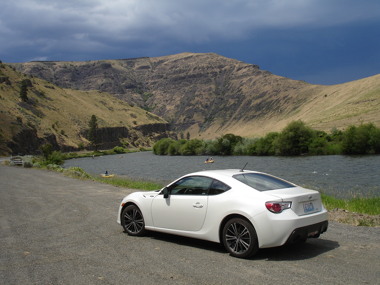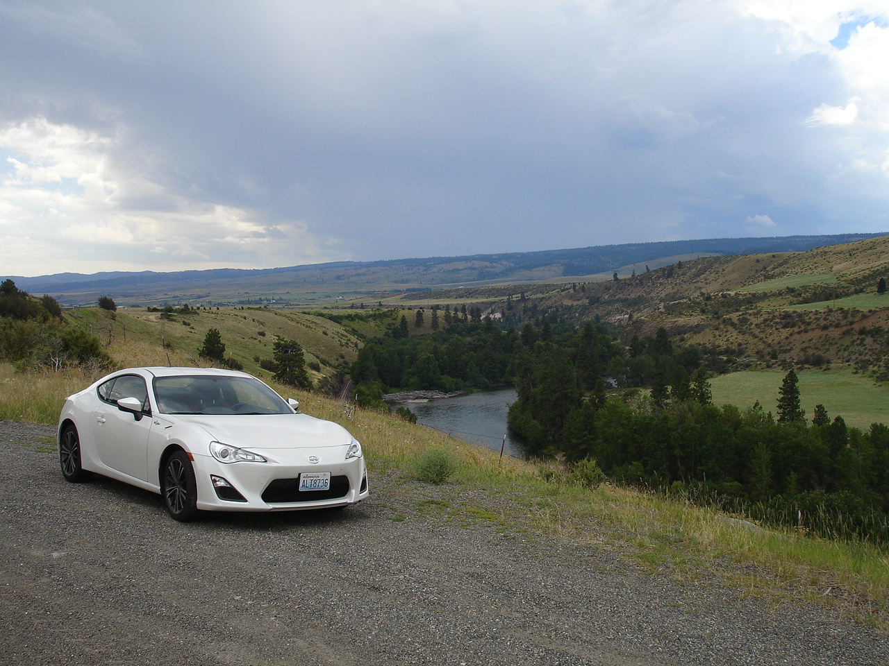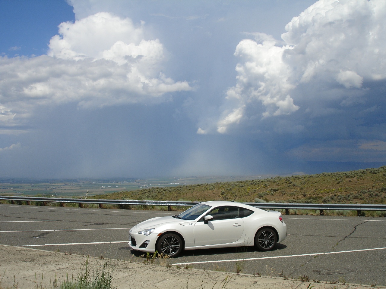 Took Hwy 10 from Cle Elum to replicate (sort of) the only photo I had of my Alfa GTV with the FR-S. ![]() ![]() Found the same turnout and tried to position it about the same. The trees have grown considerably since then. South from Ellensburg I took the Yakima Canyon road and stopped of to get a river pic with included rafters. ![]() There was a big thunderhead to the south of 90 and west of the Canyon road to Yakima that I was able to drive around. It blew over Ellensburg and inundated it while I was south of there. This is a picture I took from the viewpoint up on Manashtash Ridge. It's dumping rain and blowing the heck out of Kititas here. Thunder and Lightning and all the extra effects. When I got to E-bug the gutters and streets were full up all along the lower part of town. Trees were blown over and branches were across the road when I got over to Kititas along the Old Vantage Road. Looked like there was a critical lightning strike along the way with fire, smoke and fire department response. ![]() Stopped off at the Wild Horse Monument on the east side of the Columbia from Vantage to tag that along the way. ![]() Went through George WA, Qincy and Wenatchee for a stop at Dusty's. More thunder and lightning from the thunderhead just coming over the ridge from the south with increasing rain on the way west out of town. Had a serious downpour on the way up 97, but that was only the trailing edge of it. Managed to circumnavigate it and the weather got increasingly better on the way down the hill to Cle Elum. Hot and dry all the way back over the hill on 90.