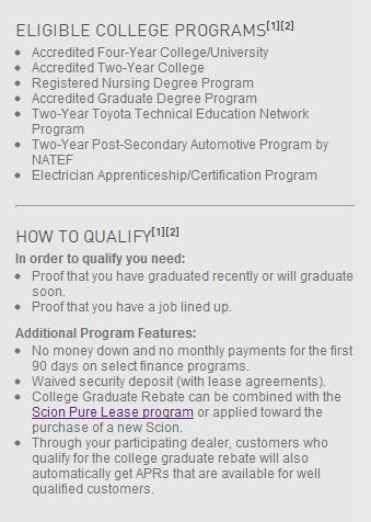 I was also denied the grad deduction. Even with signed documents stating I'd be graduating within the 4 months they kept giving me the run around (toyota, not the dealer). They said the signatures and the date all had to be on the same paper which was not possible as I'm taking a course through a different school than the one issuing my diploma.