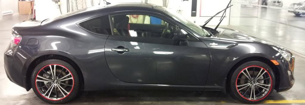 I have as Asphalt FR-S was thinking about what a red time attack stripe would look like painted onto the OEM wheel: