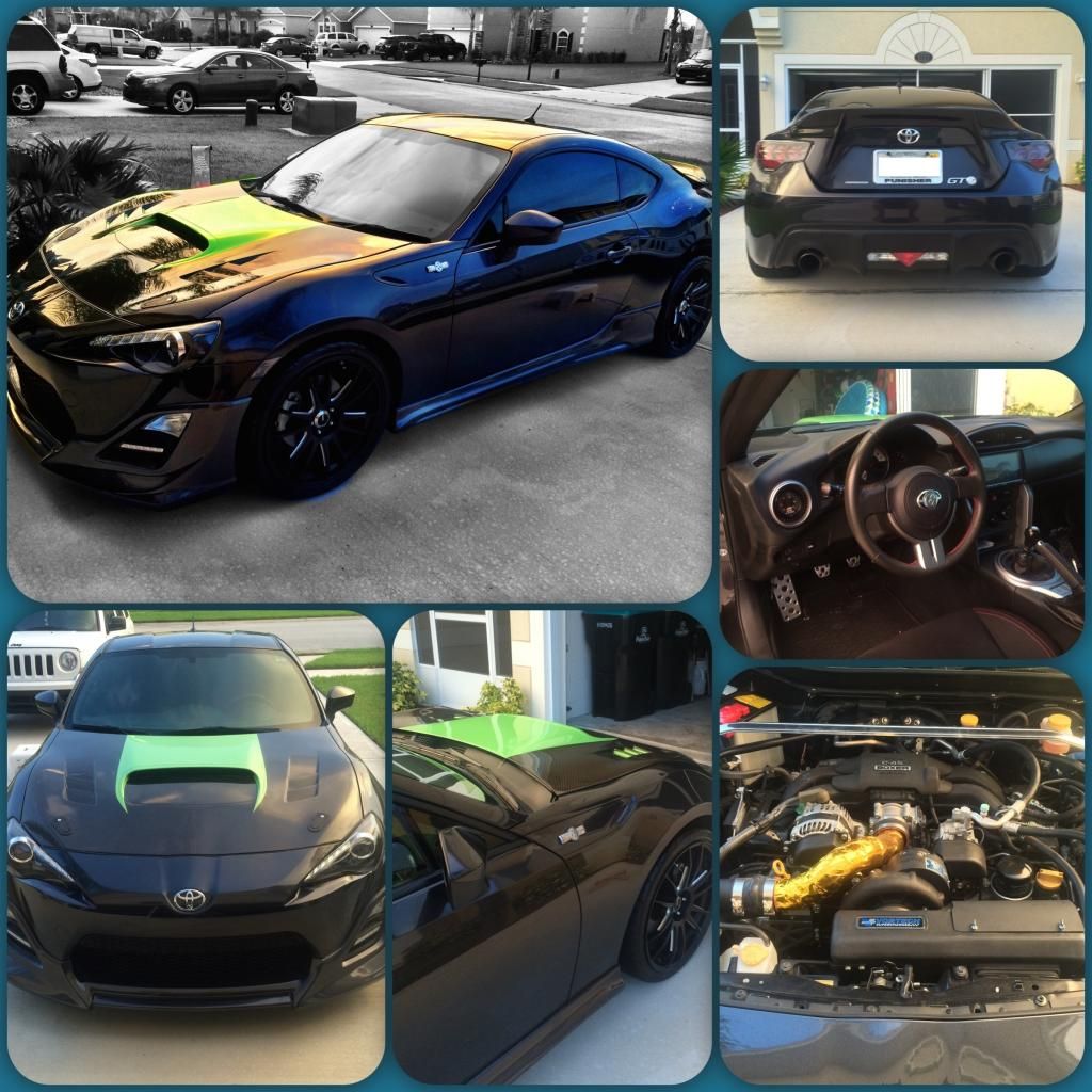 ![]() Here is my GT86 Current mods are: seibon cf hood hood struts aerocatch hood pins c-west front lip and side skirts cfw cf spoiler Toyota and GT-86 emblems cusco shorty antenna cusco shift knob cusco strut bar buddy club tail lights winjet headlights with drl mod, Hid 5000k and green demon eyes Perrin Catback exhaust motiv front pipe pioneer appradio 3 aem boost/ af fuel safe gauge Vortech kit tuned by Circuit Motorsports Konig torch matte black rims (19x8.5 front and 19x9.5 rear) Yokohama S drive tires Last edited by Frs32907; 08-31-2014 at 08:24 PM. Reason: updated mods |