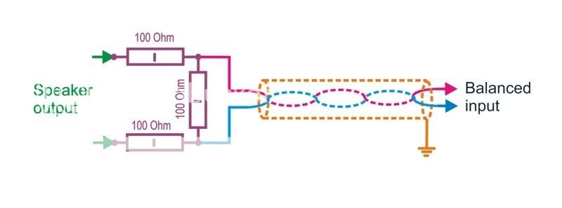 His advice was to NEVER use unbalanced (RCA) signals in cars. Since the signal is referencing the head unit's chassis ground, it's pretty likely that your amplifier/DSP is referencing a slightly different ground. Ground loops allow noise in. His suggestion was to use the speaker-level outputs to generate a "balanced" low level output. This uses a "differential attenuator" circuit that is pretty simple: ![]() According to the Scion/Pioneer manual, our speaker outputs are 40W maximum. Speakers are a nominal 4 Ohm impedance. P = V * I = V^2 / R 40 = V^2 / 4 Vmax = sqrt(10) = 3.162 Volts Vrms = Vmax / sqrt(2) = 2.236 Volts If I'm plugging into a MiniDSP: LINK to manual The maximum input Vrms is 8. That means we don't have to attenuate the signal. One more consideration should be made. Amplifiers can deliver mild amounts of DC offset, which are fine when you're driving a speaker... but not fine when that's sent through a DSP and amplifier. To remove DC offset, you need to decouple the headunit from the DSP using a capacitor. If the input impedance on the DSP is 48 kOhms (like on the MiniDSP), you can determine how much (or little) this capacitor will affect the signal. LINK to Calculator A $1 bipolar electrolytic capacitor from Mouser, with capacitance of 100 uF will have a corner frequency of ~0.03 Hz. At -20dB/decade, that's atleast -50dB of floor below a 20Hz signal. TL;DR - Don't use unbalanced RCA's if SQ is your target. Speaker-level outputs are balanced, but you might need to attenuate and adjust for offset.