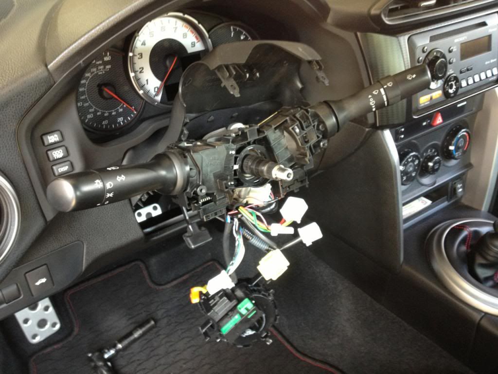 So this is what I got. Bezels, housings, 86 harness, H11 harness and the 86 stalk. H11 harness is not pictured. I ended up not needing the 86 harness. ![]() ![]() The Stalk installed. ![]() 86 wiring harness (blue) vs. FRS wiring harness (red) ![]() The FRS wiring harness (red) has 3 wires. 2 for the front double filament blinker, and one for the ground. The 86 wiring harness (blue) has 3 wires. One for the ground, one for the single filament front blinker, and one for the fog light. 86 blinkers don't stay on like the FRS and only lights up when the blinkers are used. ![]() We decided it was easier to modify the FRS harness and add the H11 harness to it. Tap the H11 harness ground wire to the ground wire on the FRS harness. Then add the other wire on the H11 to the open pin on the FRS wire socket thing. Here is the outcome. ![]() The other mod that needed to be done to install was cutting off 2 little clips on the housing. That's very easy. As you can see in the pic, there are 2 little clips that are cut off on the right housing. Just clip off the corresponding side that you will install on. ![]() I ended up getting LED bulbs from iJDMToy and they were just a tad big to fit through into the housing. The socket on the housing had to be shaved down just a hair to make it fit. ![]() ![]() The installation of the kit was done from under the car. He did not need to take off the bumper. ![]() The fog light indicator lights up when used. Not sure if this lights up when the button is used instead of the stalk. ![]() Here it is installed. ![]() Light up. ![]() Next on my list will be the GT86 headlights...