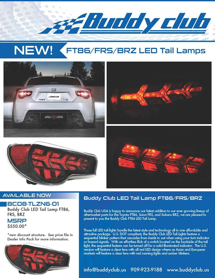 JDM SPEC (AMBER) ![]() JDM SPEC (AMBER) ![]() US SPEC (ALL RED) ![]() Info URL http://www.fteightysix.com/pages/buddy-club-lights.html http://blog.fteightysix.com/buddy-cl...ec-taillights/ Here is the Link for the product video we did yesterday. [ame]http://youtu.be/-Rj0Cm_mqBs[/ame] IG POST http://instagram.com/p/g3q6aWJHwc/ http://instagram.com/p/g3q6aWJHwc/ We have them available for same day shipment on our store. The sell price is pretty set on these per Buddy Club so pricing should be about the same from every one of the Authorized Dealers - We have ft86club coupons - so you can use that If you see anything different Please PM us for best price TO PURCHASE THESE AND FOR SHIPMENT AND TRACKING SAME DAY CHECK THESE LINKS STORE URL www.fteightysix.com Product URL http://www.fteightysix.com/exterior/...-s-subaru-brz/ Last edited by 86SPEED; 01-01-2014 at 07:24 AM. Reason: added info |