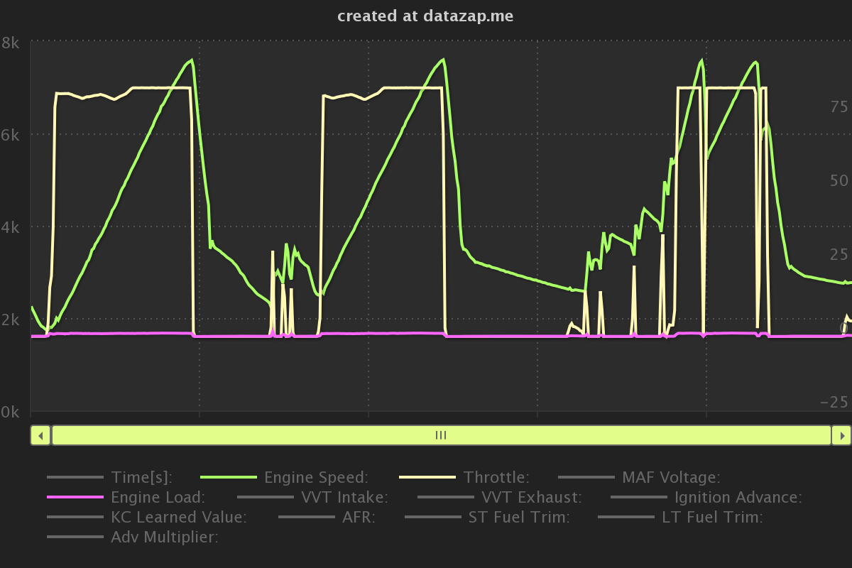 ![]() What's up guys! I'm the one who made datazap. I hope you guys like it, I tried to make it as easy as possible to use. There's a help screen that documents some of the features, but since I've found that no one likes to read those things, I'll explain a few of the things here: Here's an example data log to play with: http://datazap.me/u/jpsimon/3rd-4th-gear-pull - Click + drag to zoom in on a portion of the chart - As you turn on/off sets of data, you'll notice the URL changes. If you want to link someone to your datalog with specific data showing, just copy the full URL once you have whatever data you want to share visible. When the person goes to the link those bits of data will load by default. - Once uploaded, your datalogs are saved on your main profile page for reference. - You can re-download the raw .csv from there (or on the chart page itself) - You can search/filter the data logs list - You can favorite datalogs and users. Those favorites are seen only by you on your profile page Coming soon: multi-log upload Let me know if you guys have any questions/feature requests. |