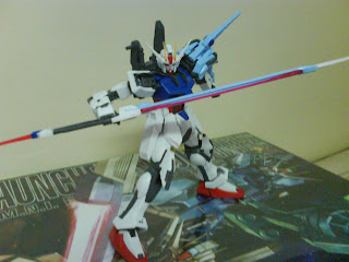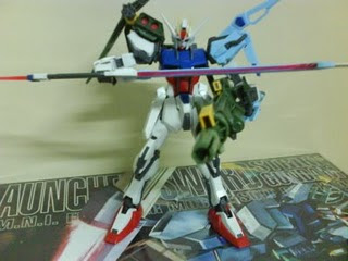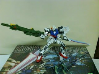 Front view. Note that I did not put the handle of the shield which can be connected in different ways(I didn't really like it though). It can be used to connect to the Strike's left hand. Left side close up. Right side close up. pew**pew**pew* ...and 00 blocks it with one sword. =P This is the provided stand. Very basic looking, but it works. It's my first stand and ONLY stand currently... ^^; See this connector here? It connects to the back, the ass, of the Strike here, the hole. Note, this hole is also used as a connector in the anime for the Strike to charge up(hook up to many wires), I think. Close up. Currently my phone's wallpaper. ^^; This is Aile Strike's box art pose. I just dunno why I like it so much. The basic Strike is pretty fun to play with, but I later realize something annoying... the damn ankle armor on the right leg broke! I was like WTF? But luckily I can "stick" them together for a short while to do some poses. I later opt to take the off though, evident in some later pictures. The shield can be "folded back" as seen with the "Aile Strike pose". Err, yeah. The next day, I decided to build the Sword Striker pack. Easy and fast to assemble as it mostly had big parts. The Sword Striker is mostly used for short range combat and anti-ship combat. The big sword is an anti-ship sword, which is its name frankly. personally, I like this Striker pack the most, but not something that is practical to use most of the times as the big sword can be quite slow for cutting(evident in Battle Assault 3, doh). Front view. Yes, it's also a newer picture. The thing on Strike's left shoulder is the beam boomerang, the Mydas-Messer, which is used as well, a boomerang. Probably the only long-range weapon available to the pilot when using this pack. Yes, the Sword Striker is mostly limited to short range. Rear view. Can you see the "claw" on the left arm? Yes, its caled the Panser-Eisen. Pretty much to grab/grapple and claw enemies up. ![]() Side view. Reaching out for the anit-ship sword. I just love this pose! ...>.>;;; close up Close up, err, don't cha' think the pose looks familiar? <<; Posing with a cool huge sword in front of the camera. ^o^ The Mydas Messer, activated! Sorry, I didn't try to make a throwing picture for it, since it's kinda impossible... The Panzer-Eisen, clawing enemies since 2002. Big sword, is big sword. I love characters/mechs with big swords... >_> Get ready to slash with teh big ass sword! Flying/Cruising around with a big sword... Though, there is one annoying thing about the Strike holding the sword, the sword can easily fall out the hands because Bandai did not opt to give a proper connector to hold the weapons firmly like some other newer MGs(Turn A has a connector on the palm which enabled it to hold the weapons firmly). Next up, the Launcher Striker pack. I build this much later on since I'm not such a big fan of huge guns. Boy am I wrong, the Launcher Strike is actually quite amazing, especially that it can keep its distance far away from the enemies(in Battle Assault 3 >>) as well as caused a huge gapping hole to the colony in one of the earlier episode of SEED. Front view. The launcher is pretty big and the Strike may fall down when trying to pose with it, if not posed properly. The thing on Strike's right shoulder has some kind of solid round machine gun and missiles. Really useful when you're low on energy to use the energy sucking launcher(read a bit further for slightly better details). XP But I think the solid rounds will be quite ineffective against phase-shift using Gundams. >_>; Right side view. I wonder if the shield can be fully utilized, if it is a shield that is, since its kinda small to me and one sided. ![]() Rear view, heavy launcher, is heavy. There is a "connector" for the launcher which helps Strike to hold the launcher easily as well as holster it at the back during stand-by. Left side view. Eat this flying nuisances!