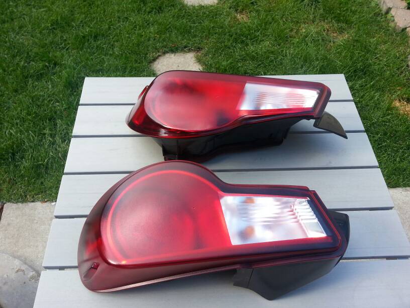 Taillight Red/Clear Painting Materials - Dupli-Color Metalcast Red - Dupli-Clear Coat - 3m 1500 and 2000 grit - Painters tape - microfiber towels - Poor Boys Sealant/Wax (had this already) - Heat gun (optional, had already) [IMG] ![]() Here were my steps. I used the DIY guide, but also added some additional steps. 1. Remove the lights 2. Clean tails with soap and water 3. Wet sand with 1500 grit 4. Clean tails with soap and water 5 Clean tails with rubbing alcohol (off the shelf) 6. Tape off blinker (optional) 7. Tape off rest of taillight 8. Spray one light coat of red 9. let stand for 10-15 min (outside temp was 80 deg, a bit humid) 10. Come back and use heat gun on high from 6-8 inches away 11. repeat 8, 9, 10 four more times. I ended up with 5 coats. Each coat a little more heavy. When I was done with the red coats. I had about 10-15% of my spray can left. The more you spray, the darker the red will be. See how mine came out and adjust accordingly. I really like it, but if I had to do it again I would stick to 3 coats just to make sure I didn't sand through it and was able to really get at it when I'm sanding. The worst thing to do is to have to paint again. 12. Wait overnight. I waited 15hr. This will vary depending on climate, humidity, etc. That's why the heat gun is good idea. 13. Remove blinker tape if added 14. Wet sand 1500 grit until the surface is smooth. Don't worry if some spots LOOK wetter or dryer in some areas. This won't be noticeable when the clear is applied, sanded, and sealant/wax is applied. 15. Wet sand 2000 grit. Same idea. Remember, the idea is to get the surface smooth, don't worry about what it looks like. Don't push too hard, as you can go through the layers... Make sure to get the sparkles out TOTALLY AND MAKE SURE IT'S SMOOTH. I WOULD ALSO RECOMMEND USING A BUFFER AND RUBBING COMPOUND/POLISH. IF THIS STEP ISN'T NEAR PERFECT THE BRAKE LIGHT WILL LIKE SHIT WHEN IT SHINES THROUGH. I HAD TO PULL OFF THE LIGHTS AND POLISH BACK DOWN TO THIS STEP. REALLY MAKE IT SMOOTH AND CLEAR. 16. Clean with soap and water with a microfiber towel. Don't use anything with lint as it get stuck to your light. I made this mistake, and that's why using a microfiber towel is great. It actually will help clean and smooth out the surface. Think of it as your last sanding step. 17. Back to you paint booth. Spray a light coat of clear coat. 18. let stand for 20-25 min (outside temp was 75 deg, no humidity). I waited longer because after the 1st coat I was laying it on pretty thick. But don't over do it because it will run. 19. Come back and use heat gun on high from 6-8 inches away 20. repeat 17, 18, 19, 20 3 more times. I ended up with 4 coats. This might be an overkill with the clear coat. But I wanted to make sure I had enough layers to sand with 1500, 2000, and apply a polish if needed before sealant/wax step. 21. Wait... This is where I'am now in the process. I will post finished up picks tomorrow after sanding, cleaning, and sealant/wax. Start [IMG] [/IMG]After wet sanding with 1500 grit [/IMG]after taping [/IMG]after all coats of red applied and drying [/IMG]next day, top is wet sanded, bottom is not. Can't really tell the difference in the pic, it's really just the feel that is different. Should be smooth. [/IMG]more pics to come... If the lights don't turn out like I want them... going with Valenti LED Tail Lamps.. worth a shot... $50 bucks + my time vs. $350 for LED tails.
