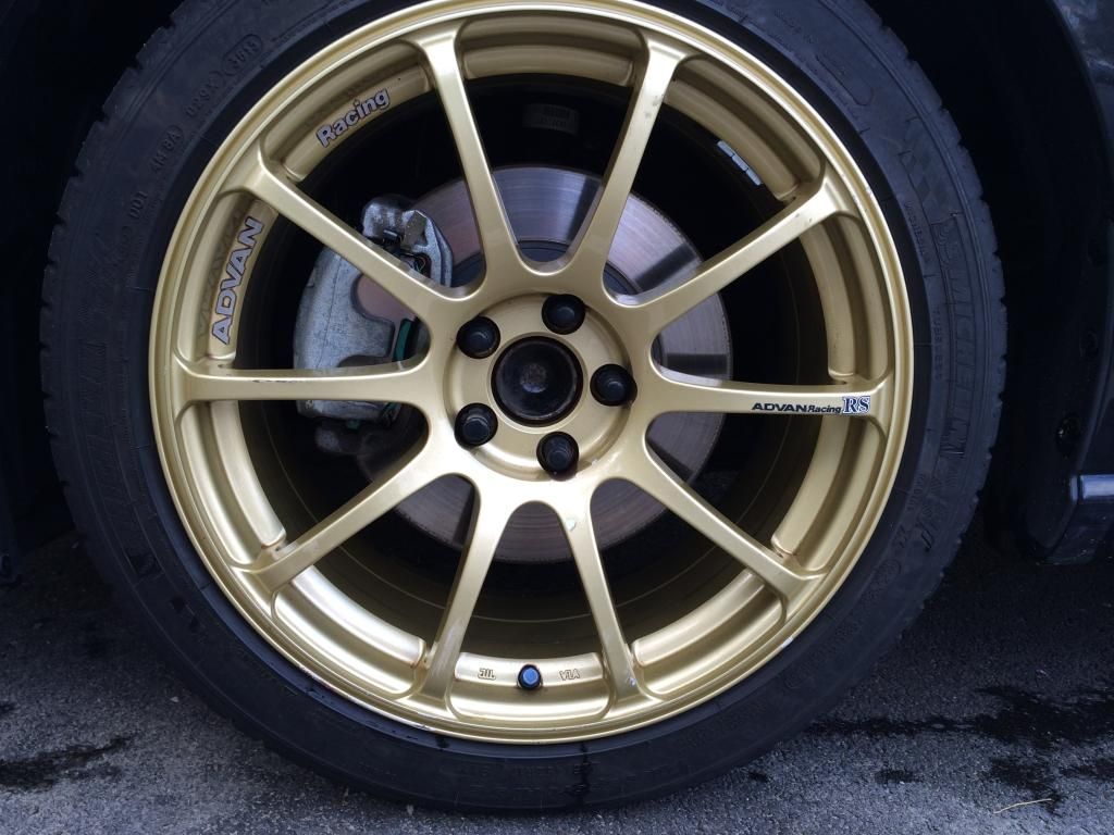 ![]() Few weeks ago, I picked up a set of Gold Advan RS 17x8 et45. I always wanted Advan wheels before I even drove a car haha. Well, finally got a set. Below are some pictures and beautiful track shot! Also, sprayed copper metalizer plasti dip to cover some damages from previous owner ![]() ![]() ![]() ![]() ![]() ![]() ![]() ![]()