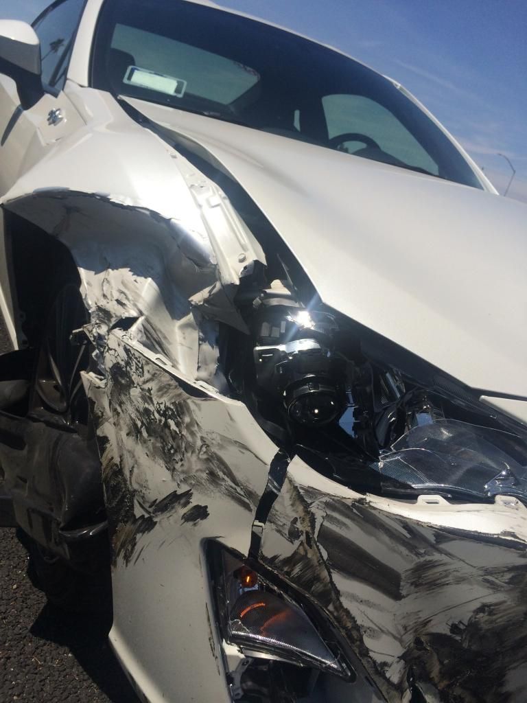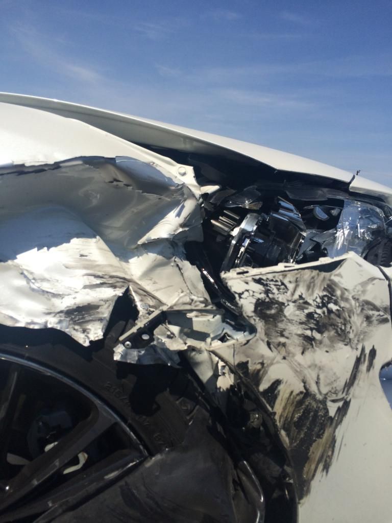 Was changing merging into the carpool lane today. As I check over my shoulder the fast lane came to a very abrupt stop at 12:30pm (0 traffic) and I rear ended the car in front of me. Just wondering if you guys think it is totaled.. 2013 with 12k miles.