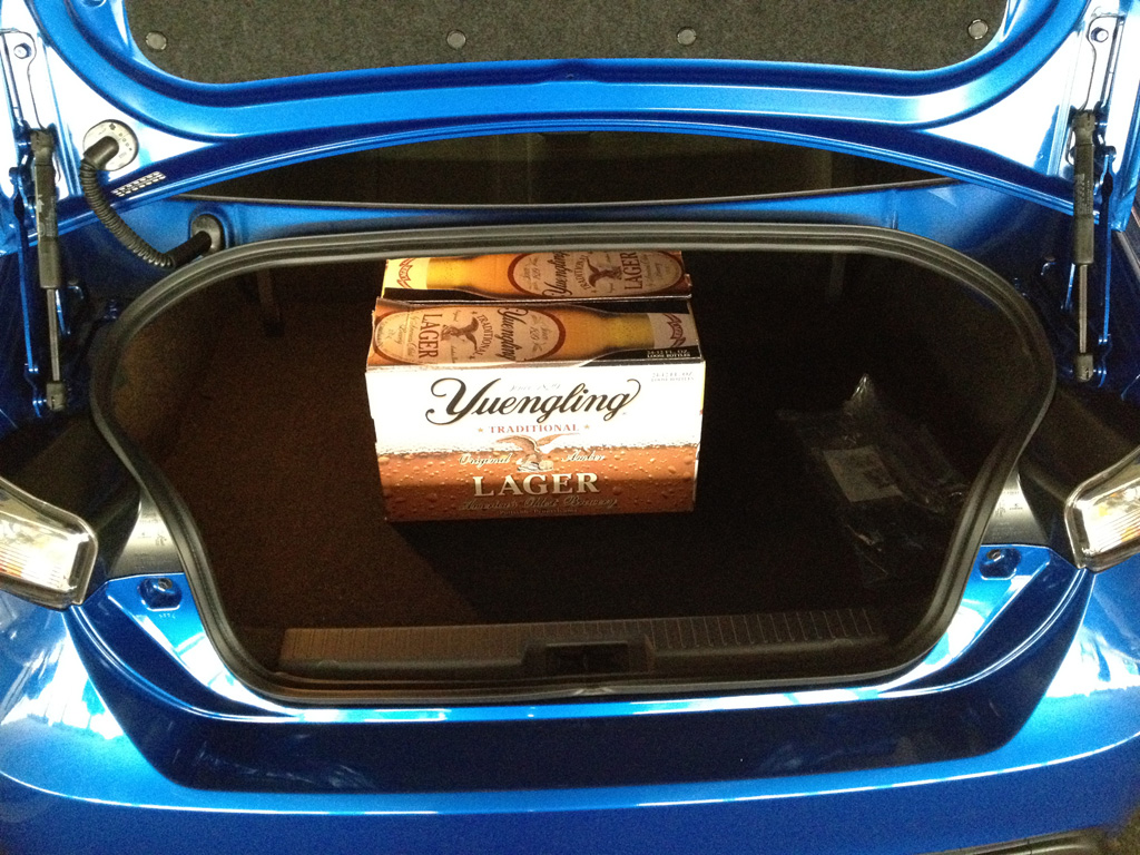 I only took a couple with my phone so far (one in the showroom and one of the trunk with a case of yuengling in it, courtesy of the guys at the dealership). I can post them, nothing crazy. I'll take a lot of pics once I throw it up on the lift, etc. I'll upload them now and post them.