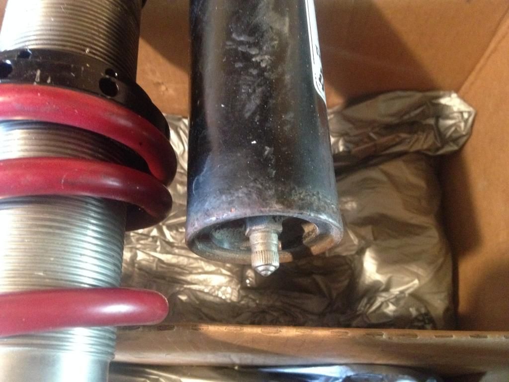 I should've sent them back immediately. Instead, I tried to get the rings loose and chalk up the rusty coilovers as my fault, as I did not ask for better/more pics. That, and I figured they'd still work fine, and I wanted them on my car, lol. The damper gave out when attempting to unseize the driver/rear rings. It's ultimately my fault, even though the fellow I got the coils from was misleading (to say the least) in his description of the items. A PayPal claim was filed and denied, based on his testimony that the coilovers were on his car and "worked fine". I imagine it'd be $200-$300 to get the rears rebuilt, but who knows. Make an offer, if you want some busted up coils, lol. |