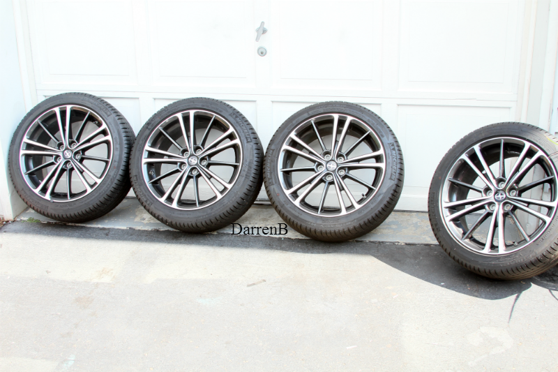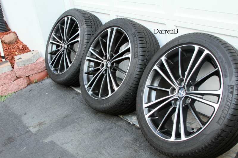 Stock wheels are taking up some much needed space in the garage. Wheels have about 2,000 miles on them and are in great condition, no scratches, no curb rash and tires have 90% tread.
