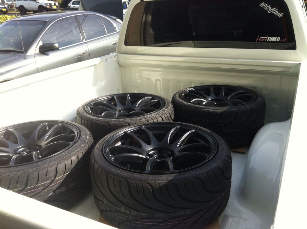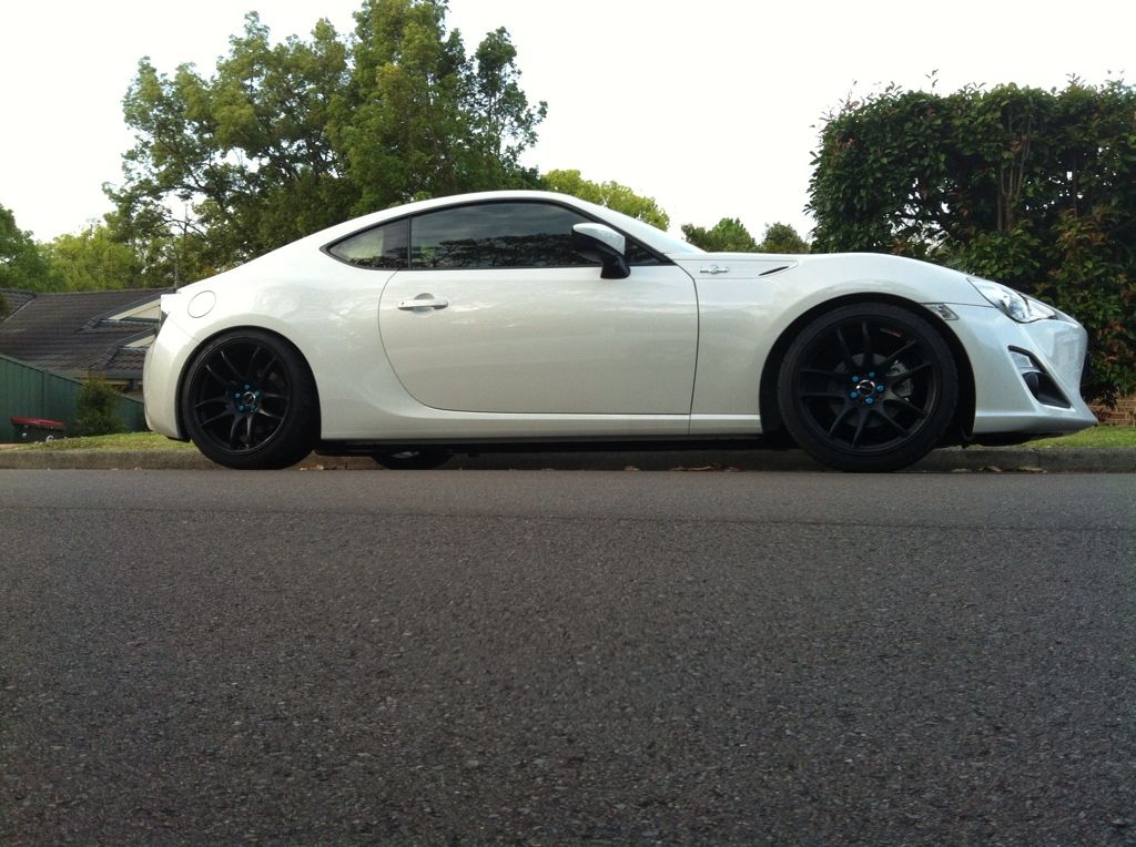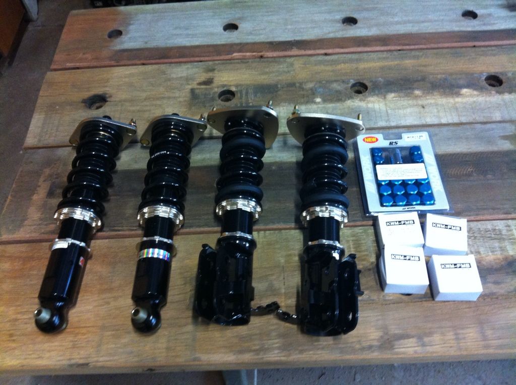 To accompany these rims and tires i got the only set of coilovers on the market at the time here in Australia which were BCs. I threw these in along with some fancy blue wheel nuts and work centre caps.
