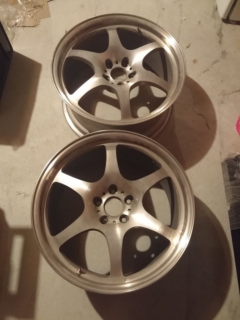 I have a set (4) of one of a kind super lightweight forged racing wheels. Comes with 2 free tires on two of them (toyo proxes T1R 225/45/17). These are lighter than Volk TE37 forged monoblock wheels. These need almost no weight to balance and are perfectly straight and round. A few cosmetic blems and curb rash but nothing major. Includes new lightweight aluminum valve stems and 56.1 hubring for Scion FR-S and Subaru BRZ, IMPREZA, WRX, STI. Here are the specs.