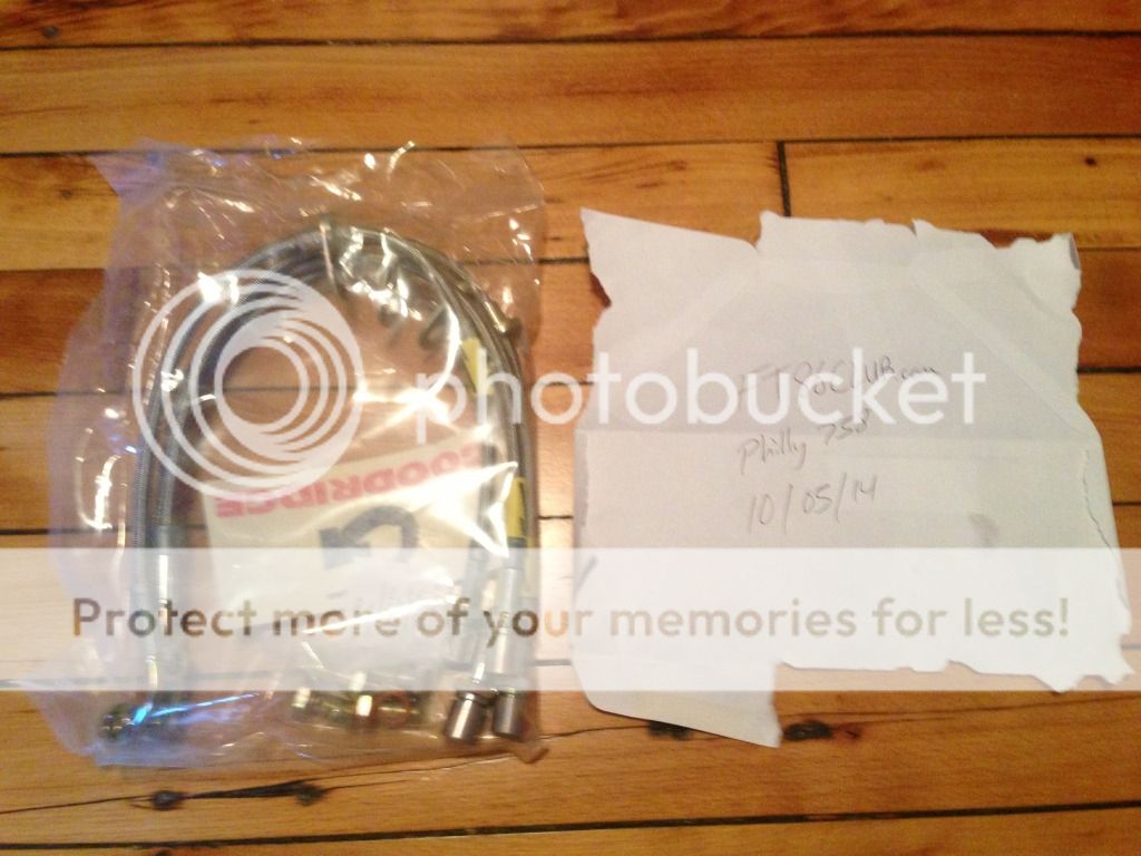 Goodridge stainless steel brake lines, brand new. Includes front and rear. Box is a little crushed on top, plastic packaging is unopened. $100 shipped. ![]() ![]()